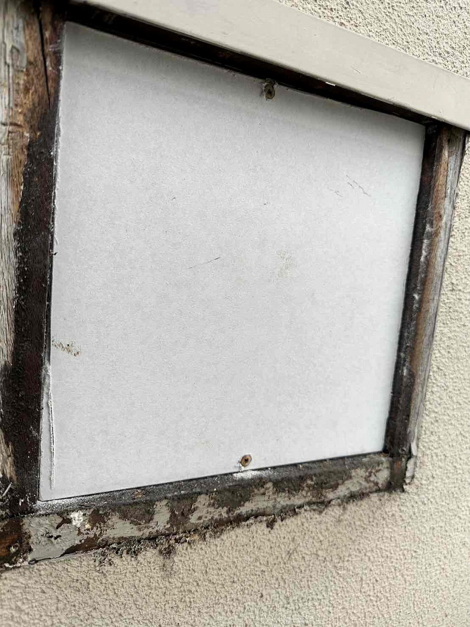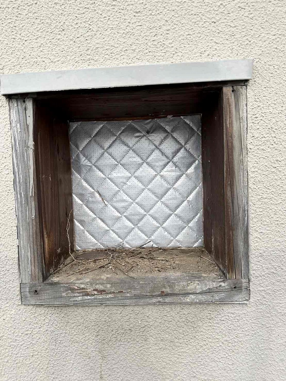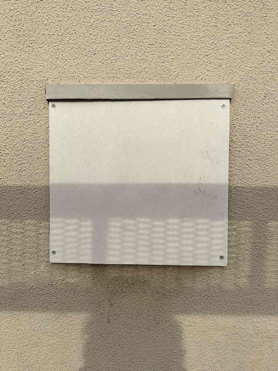 もともとフードがついていたのを撤去し、中に空間に断熱材を詰め込み、中蓋をしてビスで固定し、コーキング仕舞いをしたあと、外蓋をビスで固定し、コーキング仕舞いを行いました。