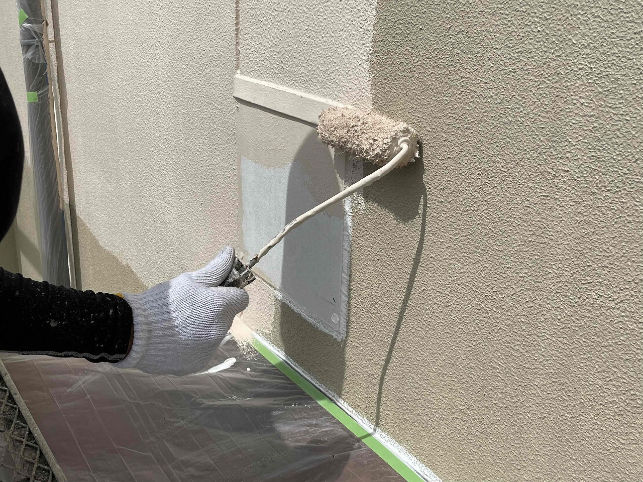 香川県高松市円座町にて外壁塗装の中塗り作業を行いました!