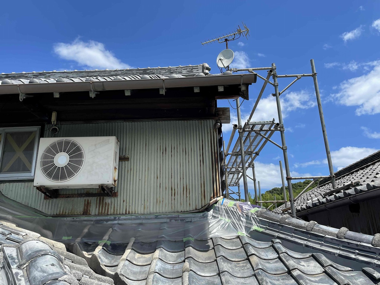本日養生作業が完了し、明日よりトタン外壁塗装(日本ペイントファインパーフェクトトップ)を行っていく予定となっております。引き続きよろしくお願いいたします!?