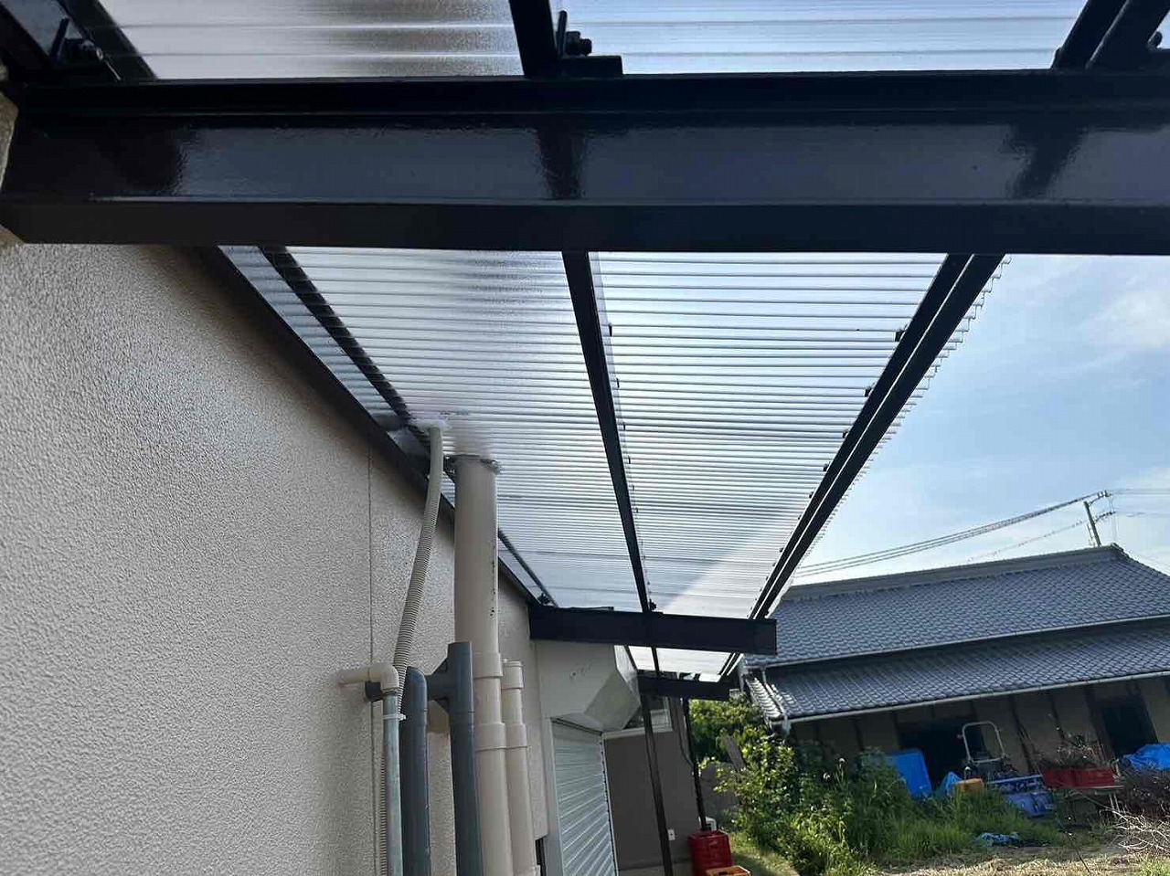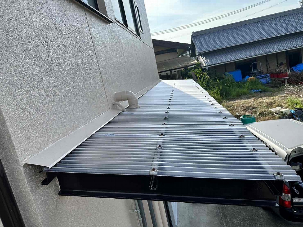先日外壁塗装工事が終わったお客様のところで、波板交換を行いました!(外壁塗装の足場がある状態では工事ができない部分でした)