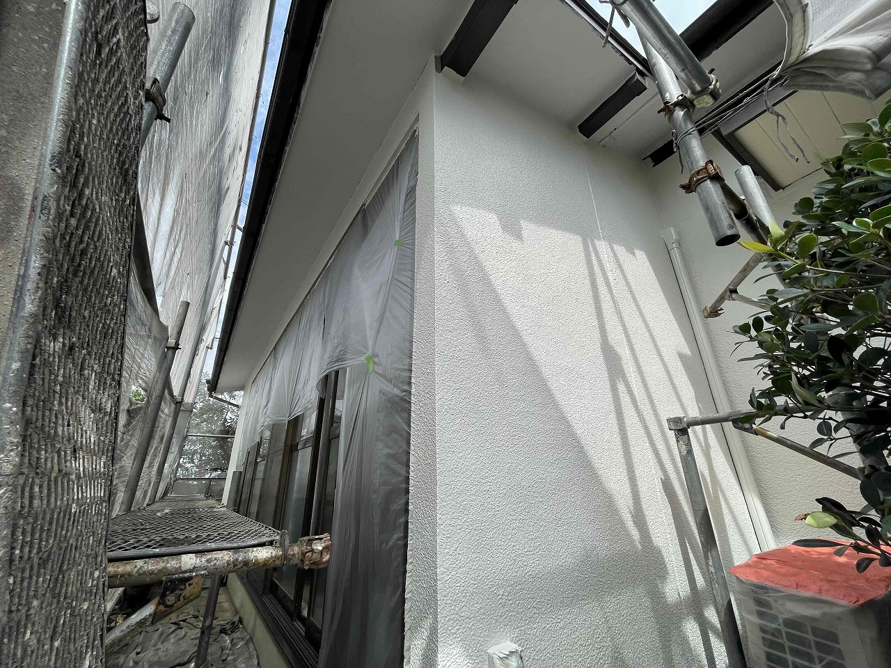 本日、軒天塗装を行いました。明日よりモルタル部分の外壁塗装(日本ペイントパーフェクトトップ)を行っていく予定となっております。引き続きよろしくお願いいたします!?