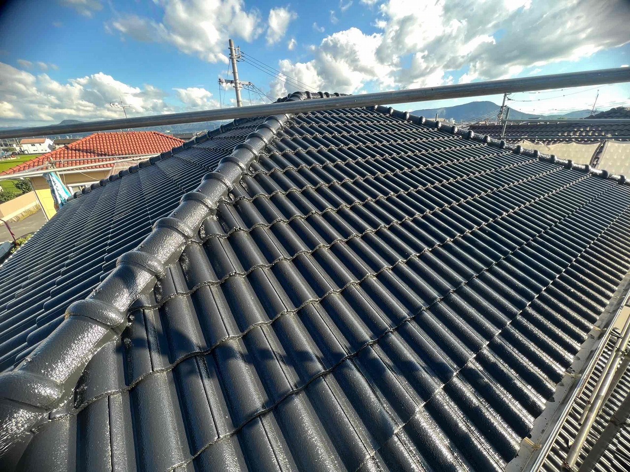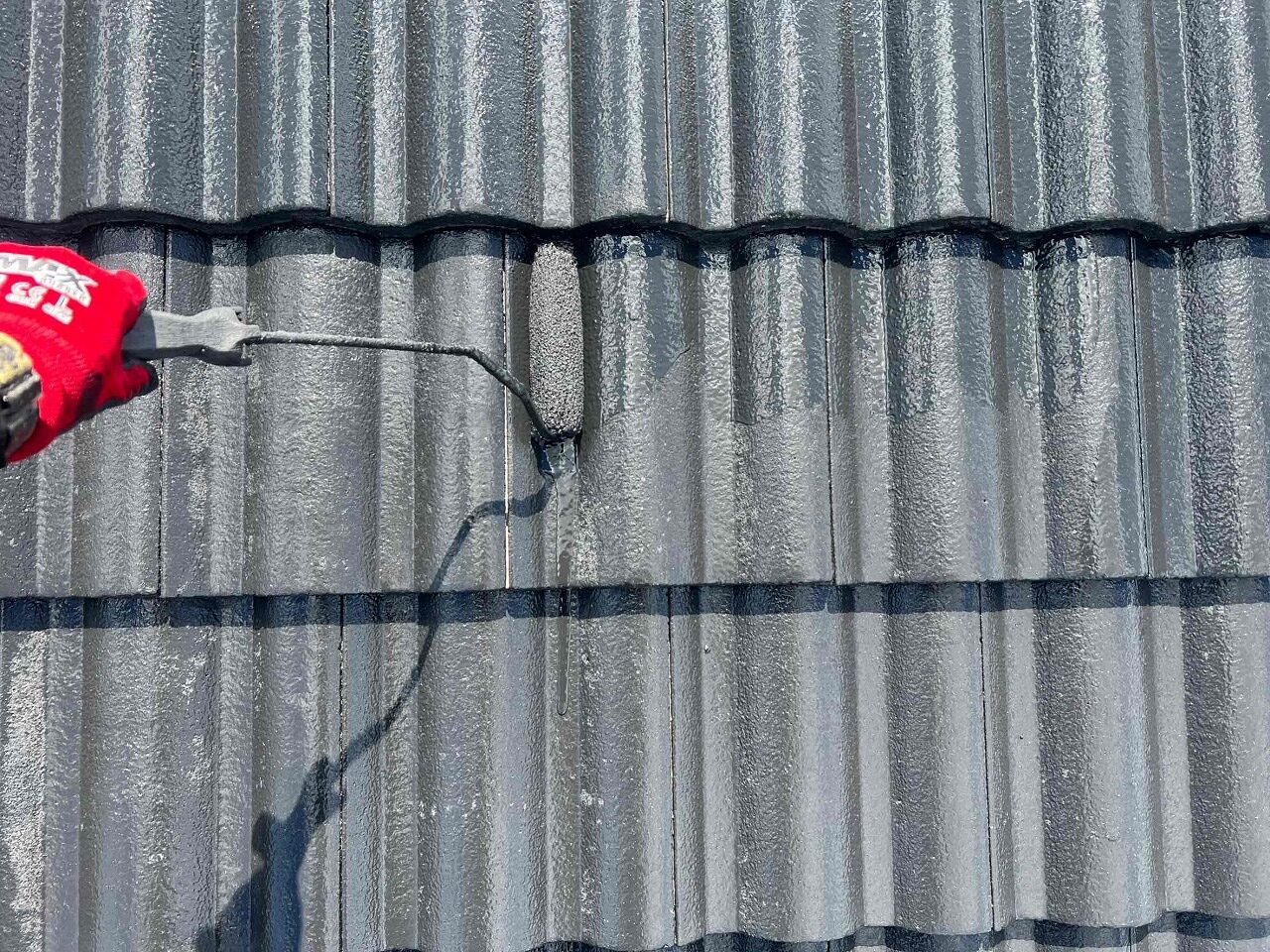 もともと乾式コンクリート(洋瓦)であったため、今回はオリエンタルマイティーシリコンという2回工程の塗料を使用いたしました!