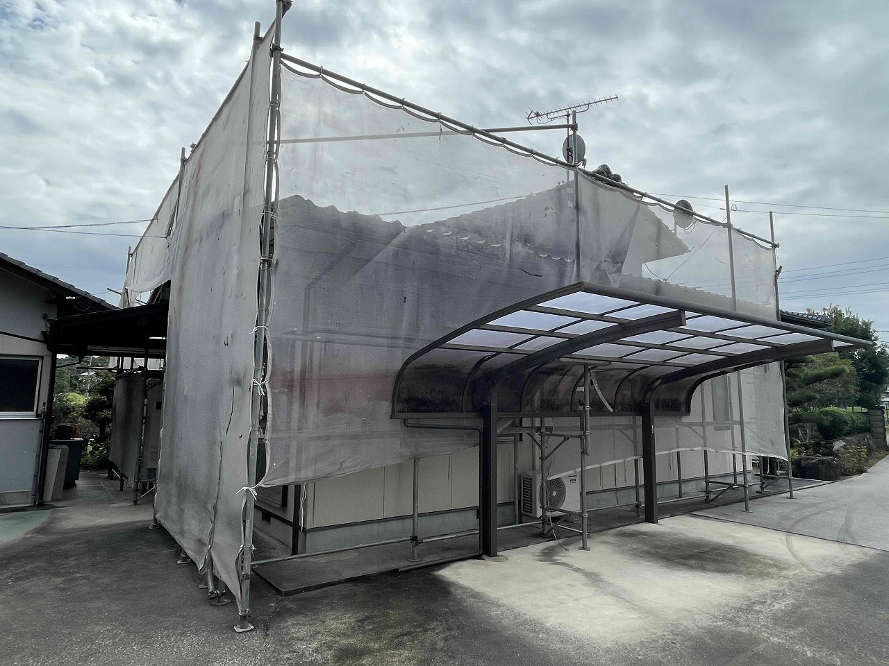 香川県綾歌郡綾川町にて外壁塗装工事の足場を設置いたしました!