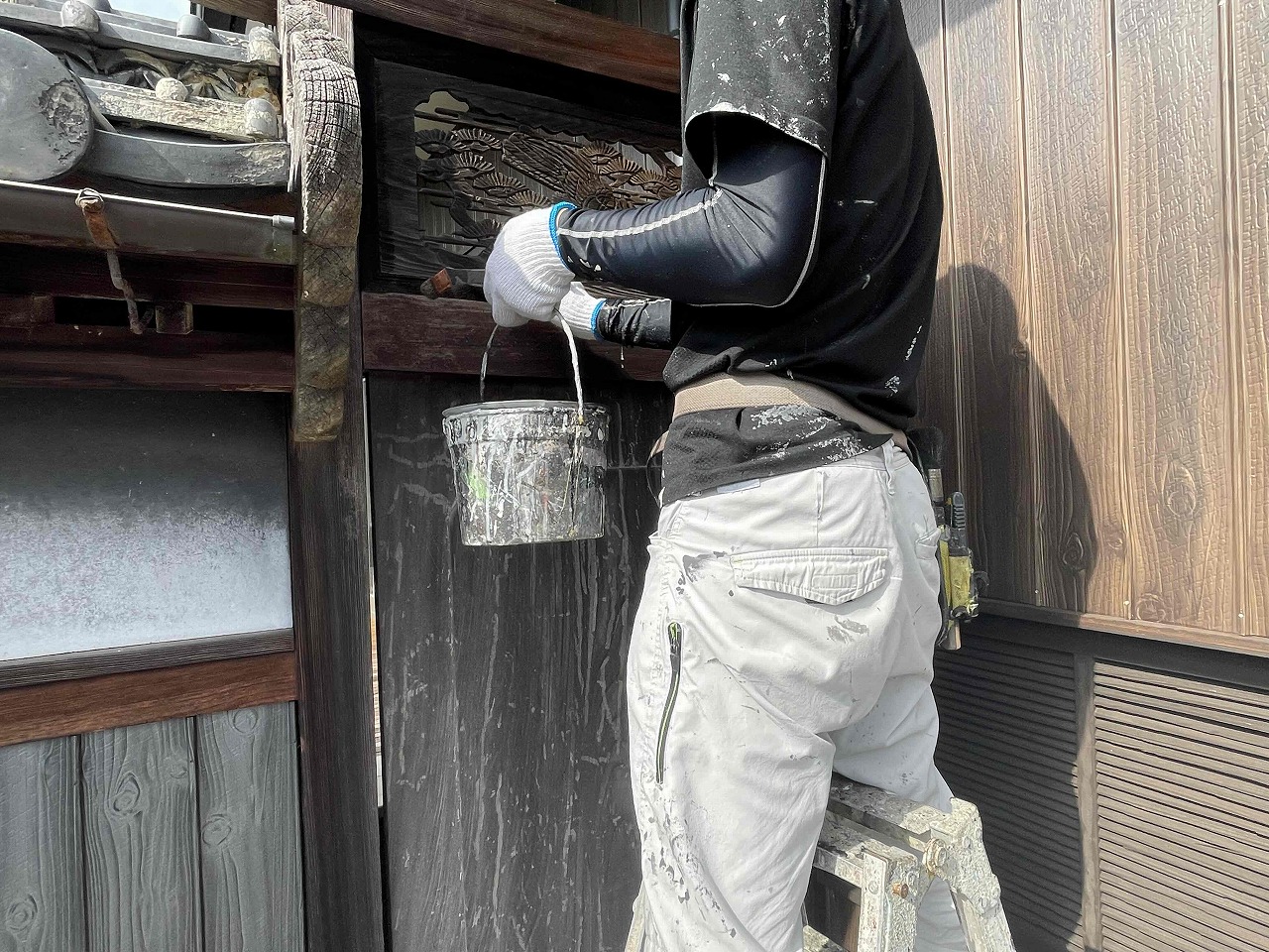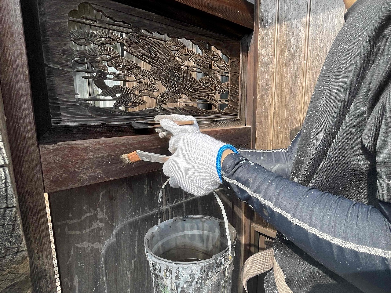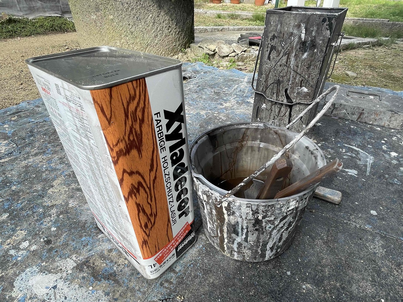 キシラデコール(防腐剤)を使い、お家周りの木部を塗装していきました。