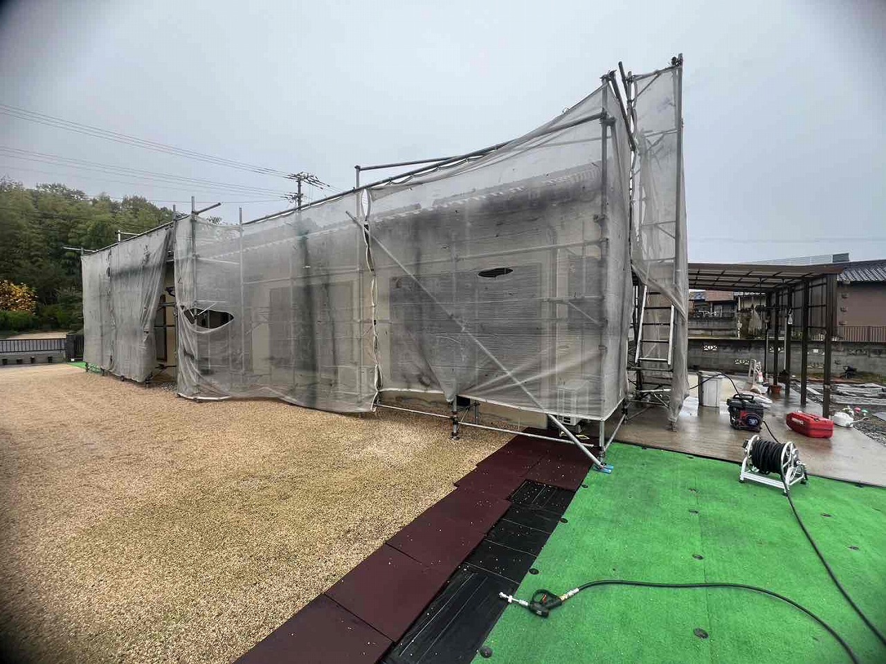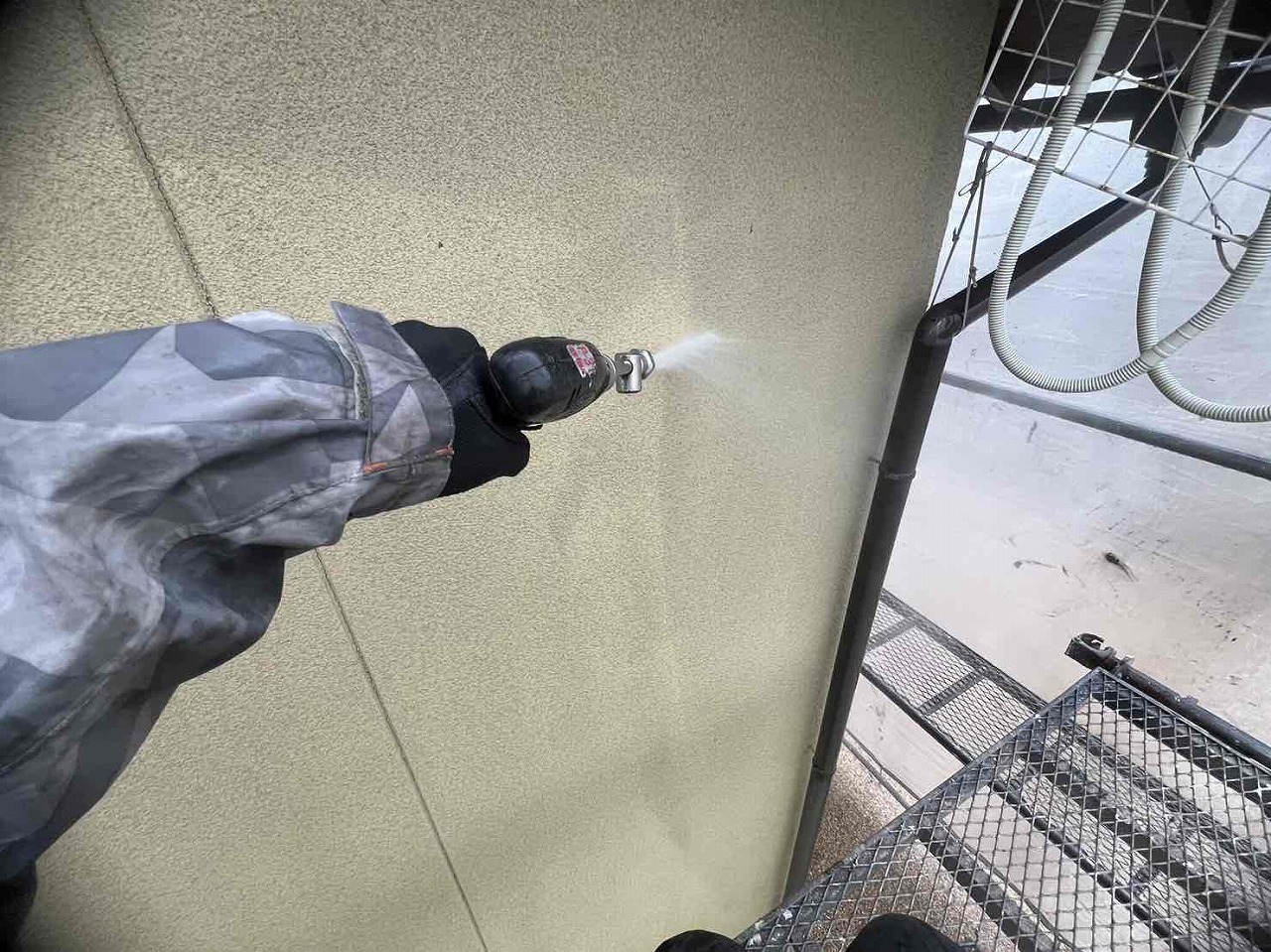 高圧洗浄機を使い、塗装する外壁を洗浄していきました。次回、養生作業を行い、塗装工事を行っていきます!