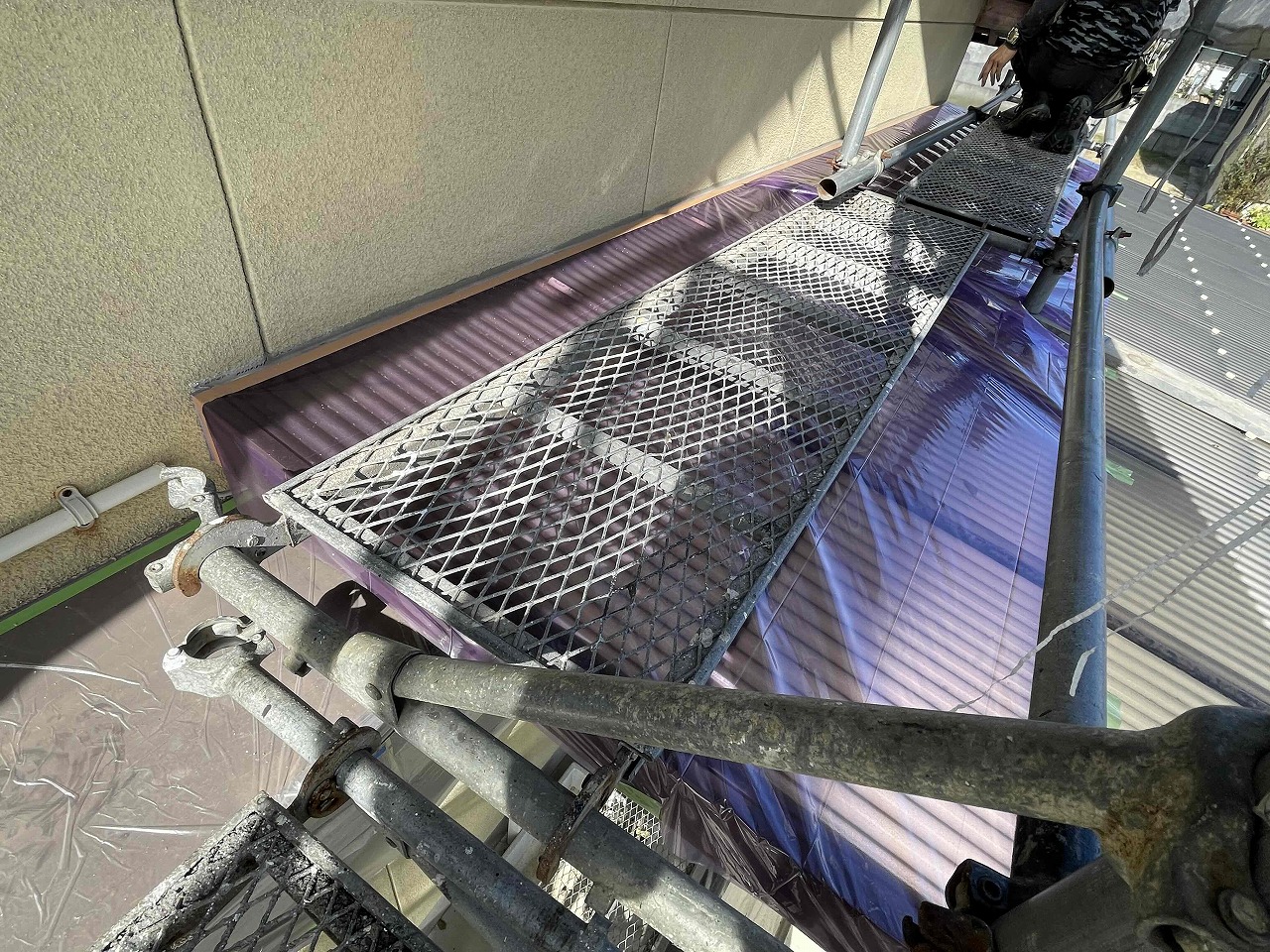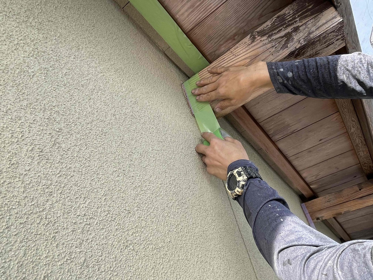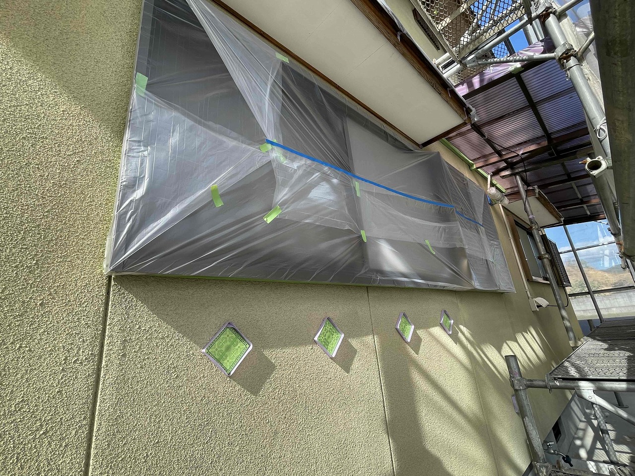 本日、塗装工事をする前の養生作業を行いました。