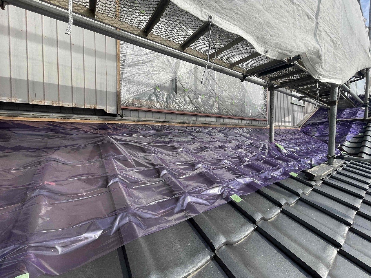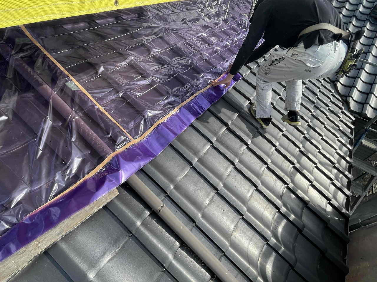 先日、下地調整(ケレン作業)が完了し、本日は養生作業を行いました。