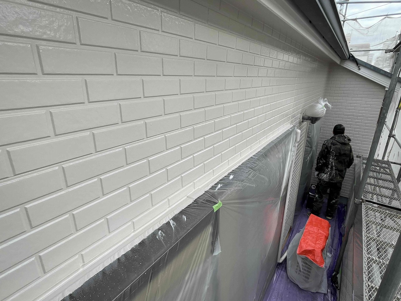 先日、中塗り(2回目塗装)が完了し、本日上塗り(3回目塗装)を行いました。