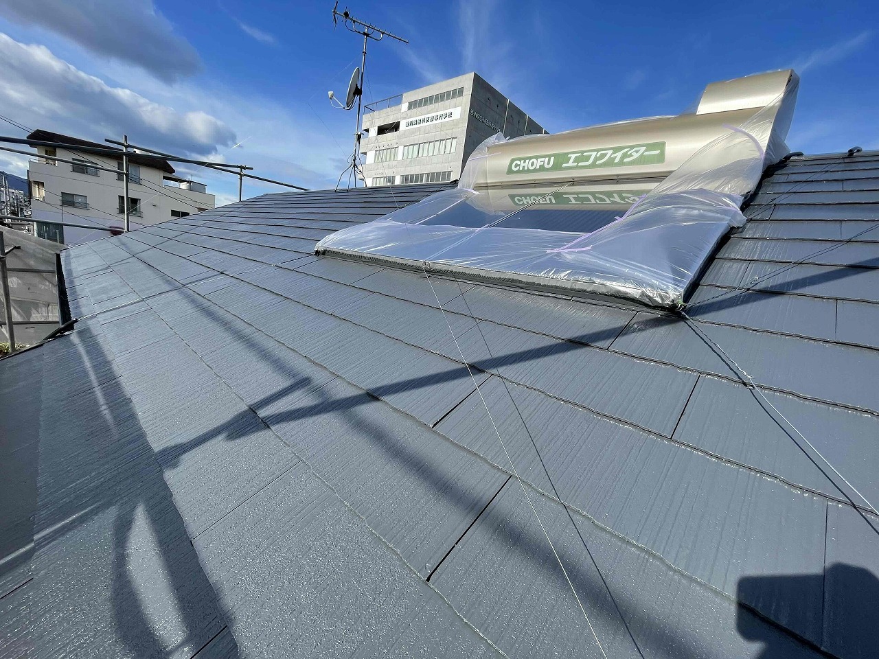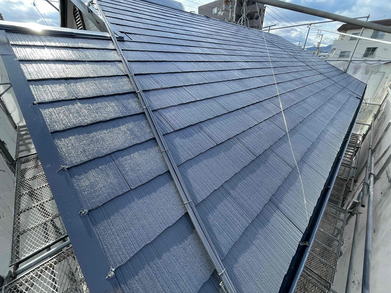 本日、屋根塗装上塗り(3回目塗装)が完工いたしました。明日より、お家周りの付帯部の塗装を行っていく予定となっております。引き続きよろしくお願いいたします!?