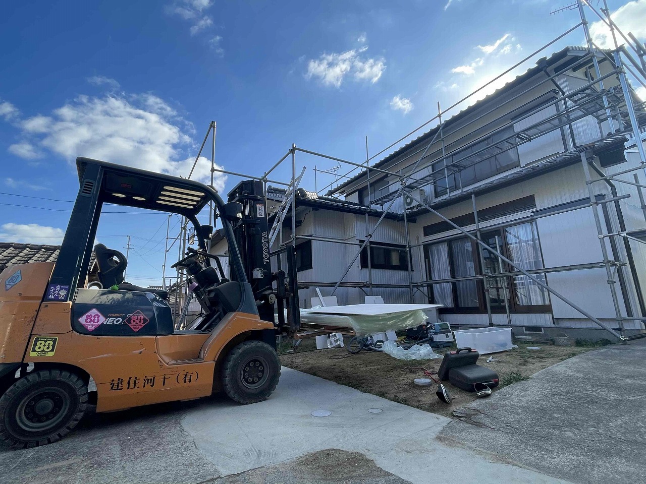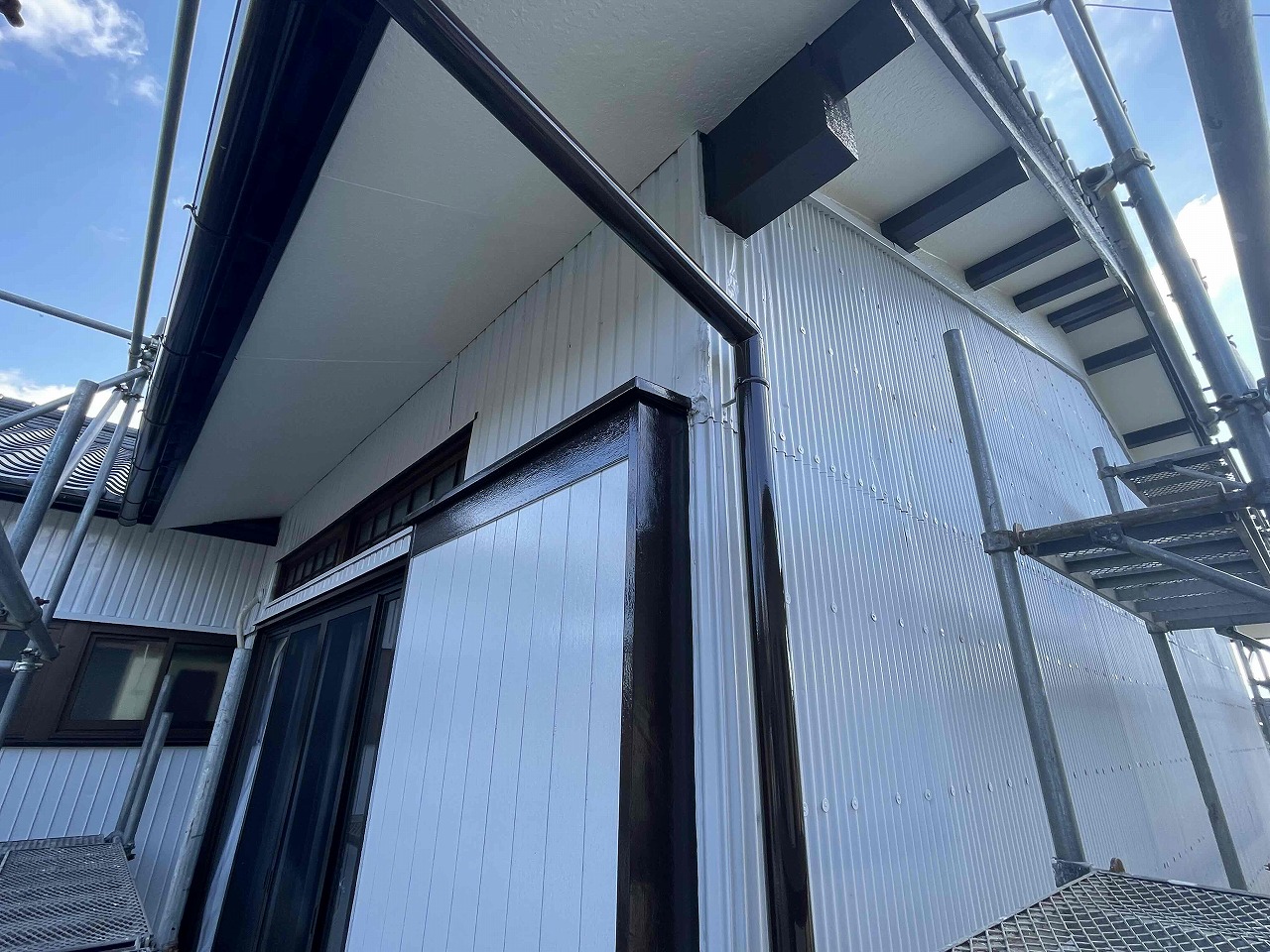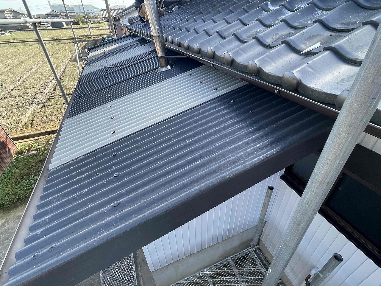 先日より軒天工事を行っていた現場にて本日、続きとスレート屋根の交換を行いました!