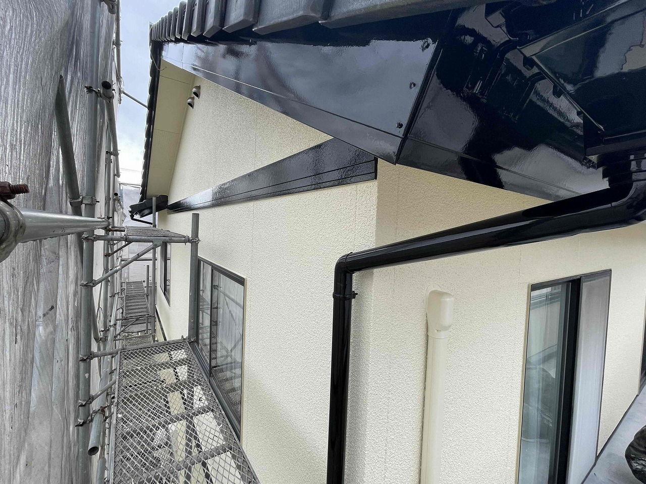 本日、付帯塗装工事が完了いたしました。明日、ベランダ防水を行い、工事完工予定となっております。引き続きよろしくお願いいたします!?