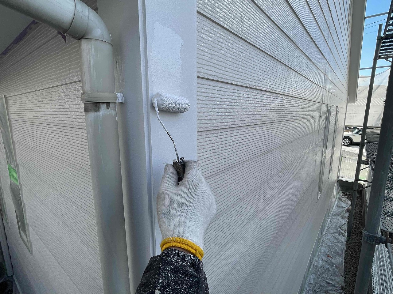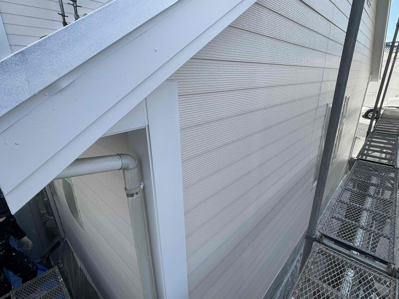 先日外壁塗装3回塗りが完了しており、本日付帯パーツ塗装の上塗りを行いました!明日も引き続き付帯パーツ類(雨樋など)の塗装を行っていく予定となっております。引き続きよろしくお願いいたします!?