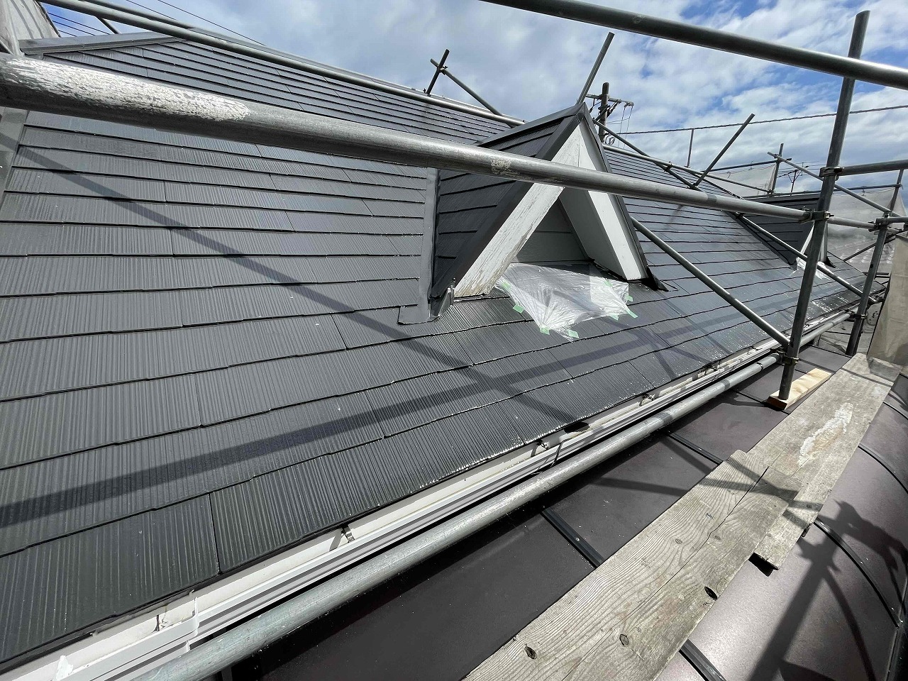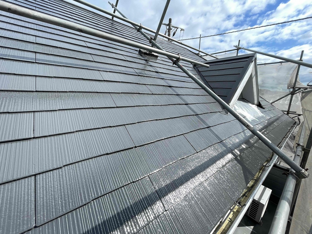 先日、中塗り(2回目塗装)が完了しており、本日は上塗り(3回目塗装)を行いました。屋根塗装は完了です!✨✨