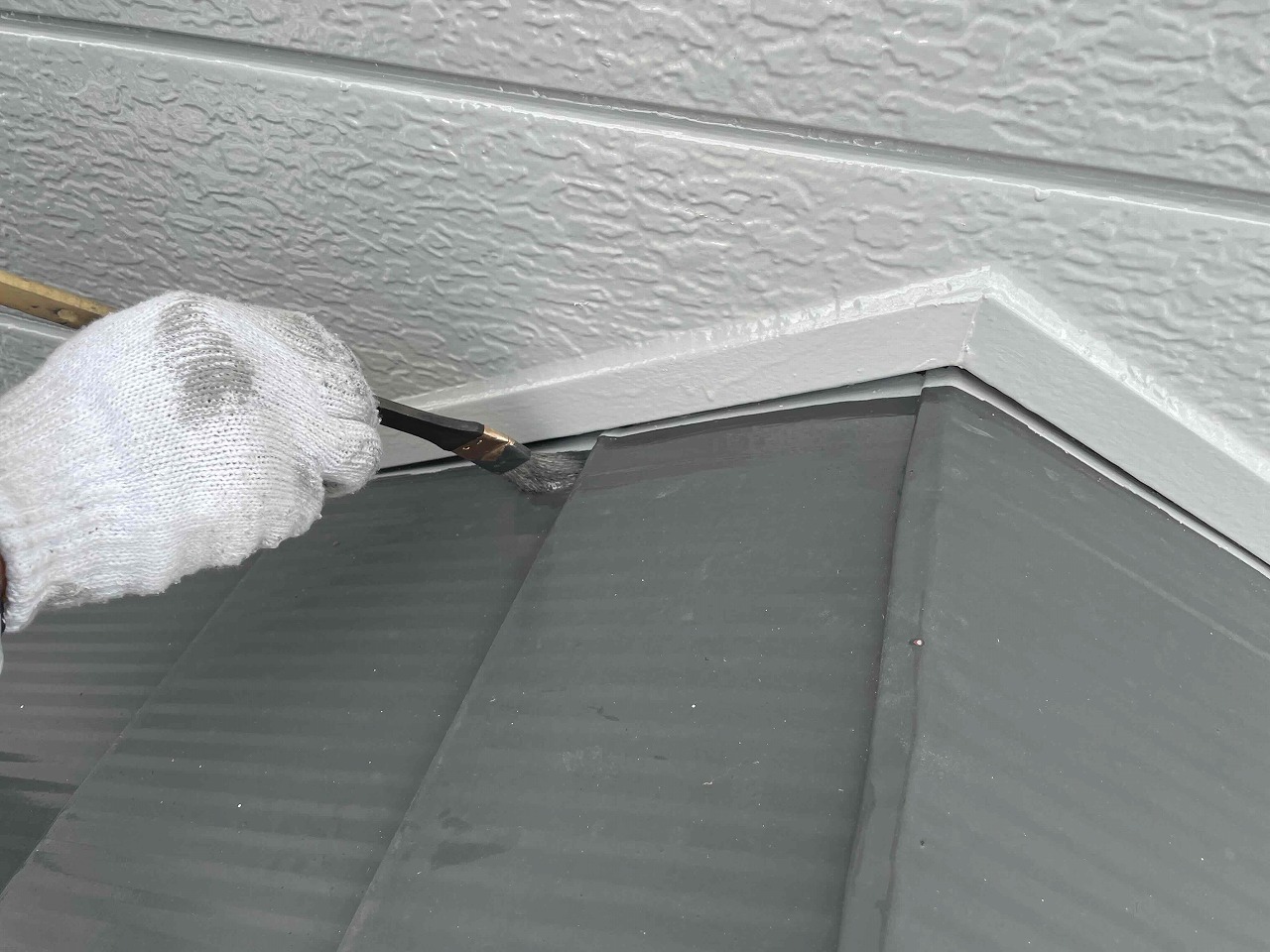 先日、雨樋塗装が完了し、本日戸袋塗装とローラーで塗装できない部分の箇所を専用のハケを使って塗装していきました。明日も引き続きよろしくお願いいたします!?