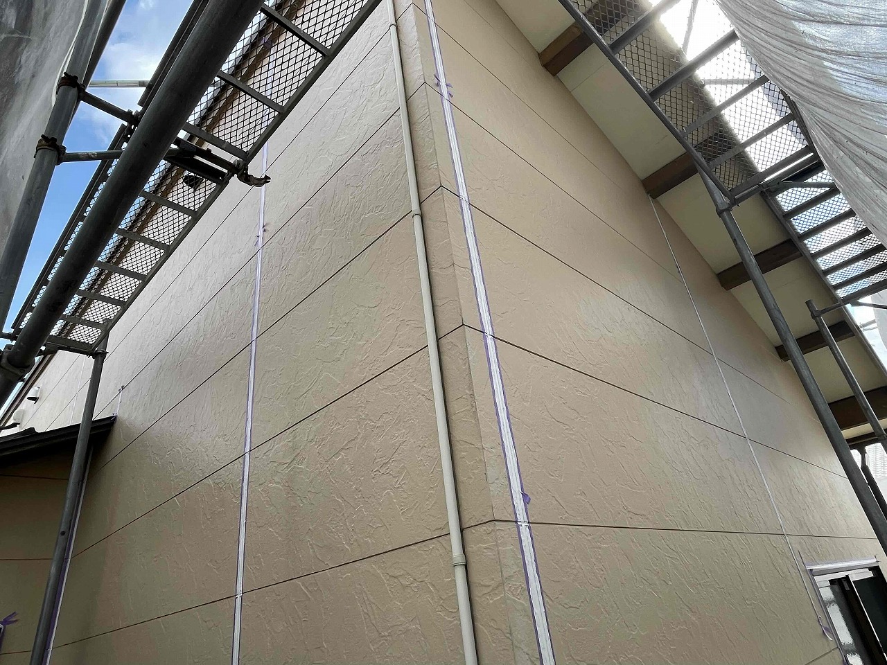 先日、既存目地のコーキング撤去と養生を行っており、本日新規目地コーキングの打ち替えが完了いたしました!