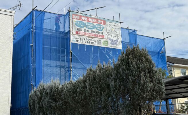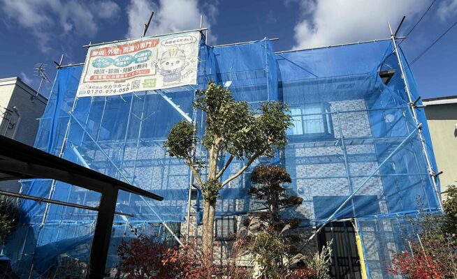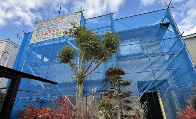 香川県木田郡三木町にて外壁塗装工事前の養生作業を行いました!