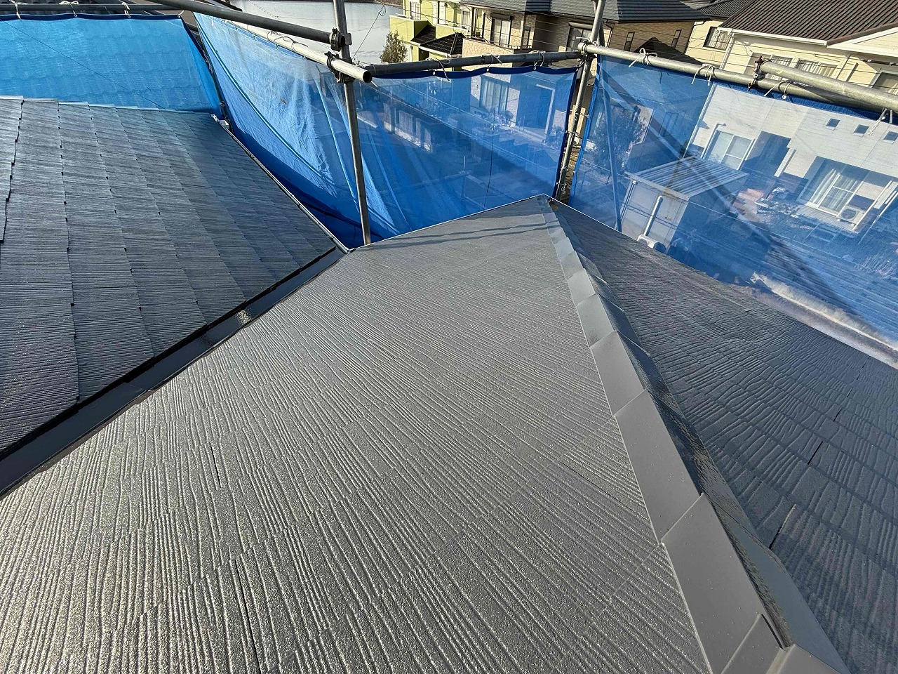 先日、養生作業が完了しており、本日は屋根・外壁の下塗り(1回目塗装)を行いました。明日、中塗り(2回目塗装)を行っていく予定となっております。引き続きよろしくお願いいたします!