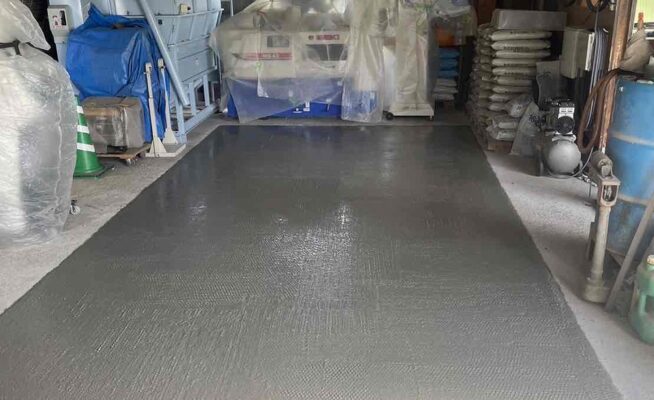 ご相談 土間を平らにしたい。工事内容 1.既存土間カッター 2.ハツリ撤去 3.下地調整 4.メッシュ設置 5.生コン(土間打ち) 6.左官 7.完工