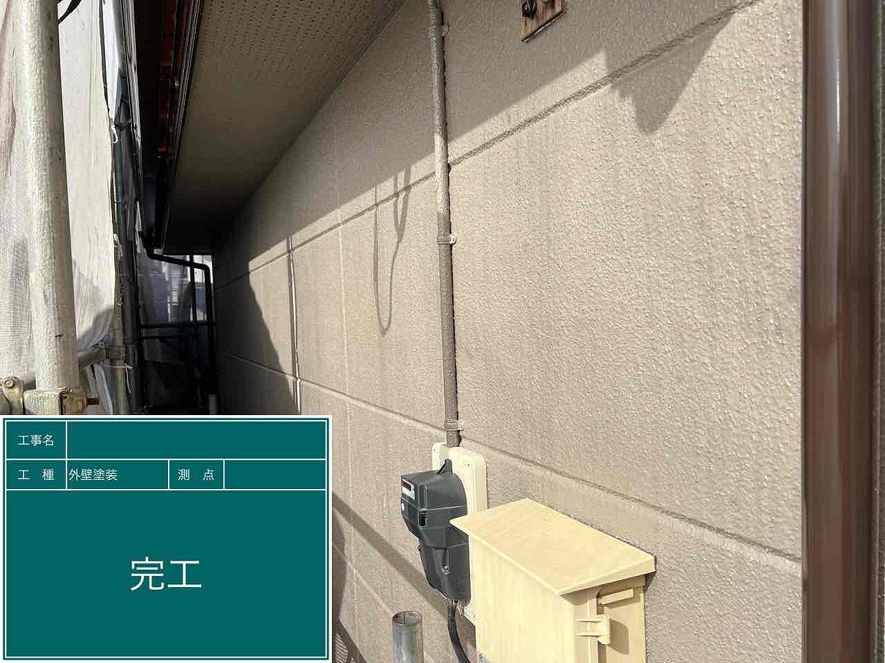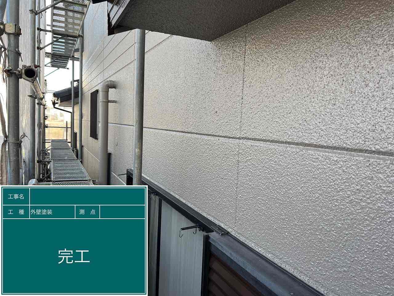 1.足場設置 2.高圧洗浄 3.養生 4.外壁塗装(3回塗り) 5.ベランダ防水(3回塗り) 6.雨樋その他付帯塗装工事 7.足場解体 8.完工