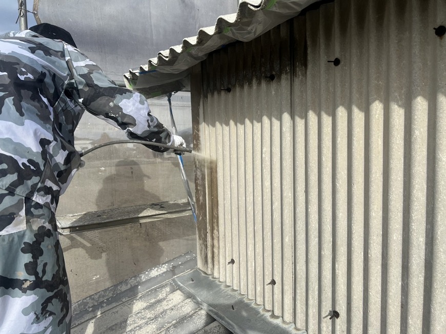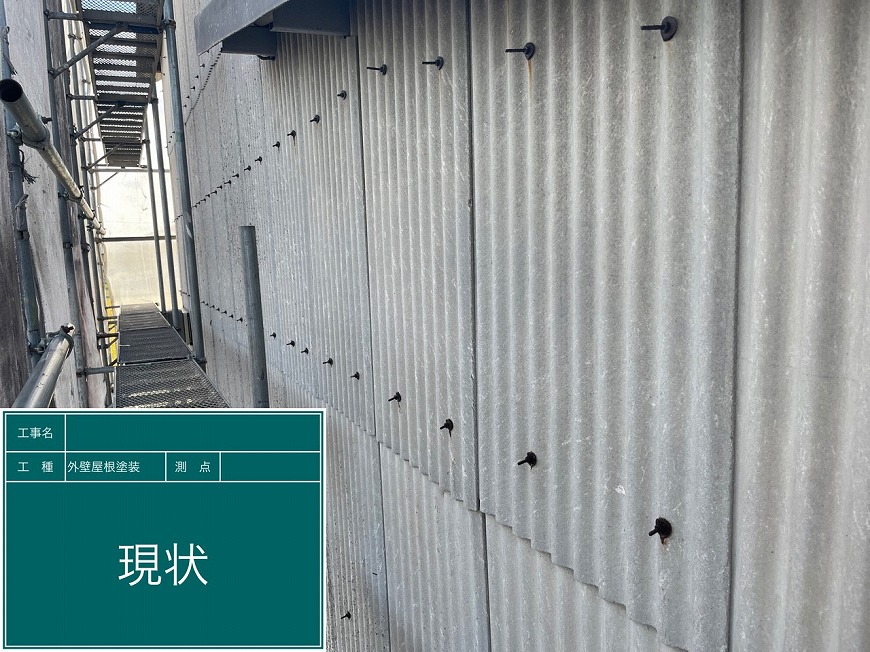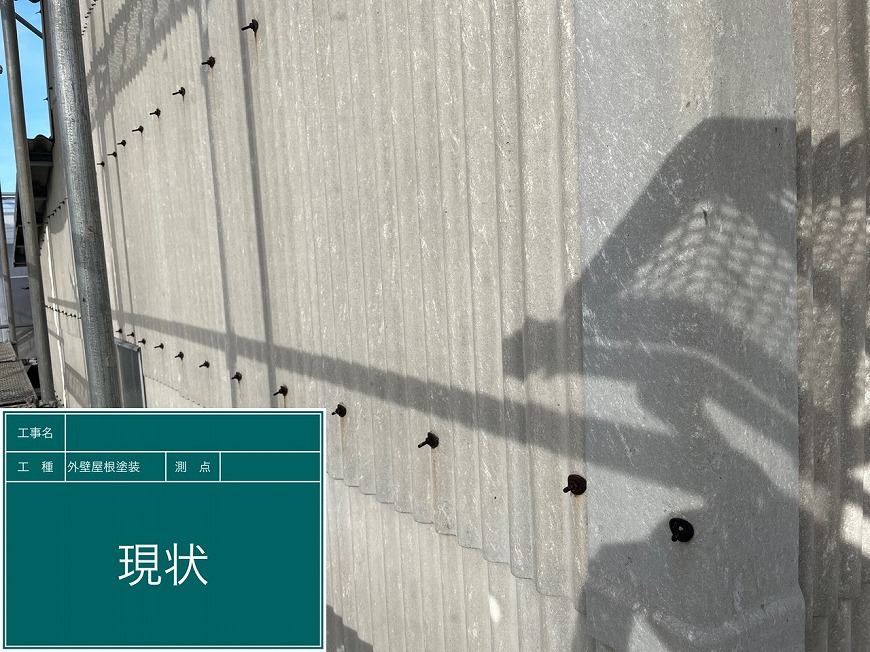 外壁はコケが生えていて金具が錆びていた。トタンは錆だらけでぺらぺらになっていた。雨樋は経年劣化により変形しており、雨樋の役目を果たしていなかった。