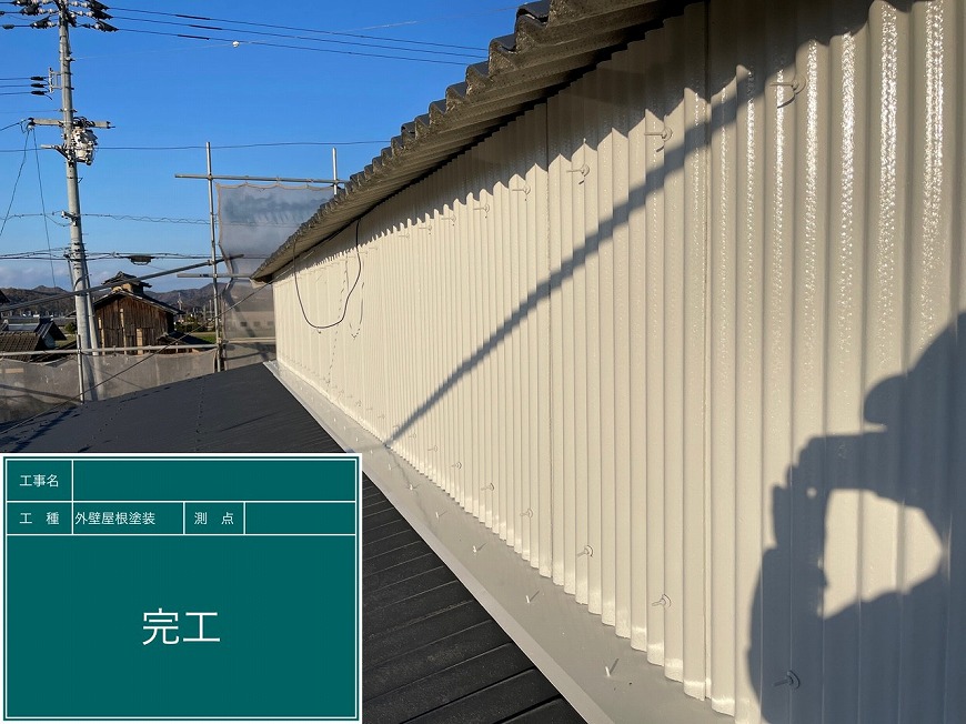 • 香川県木田郡三木町でスレート倉庫の屋根・外壁塗装工事、外壁トタンの張替え、雨樋交換を行いました
