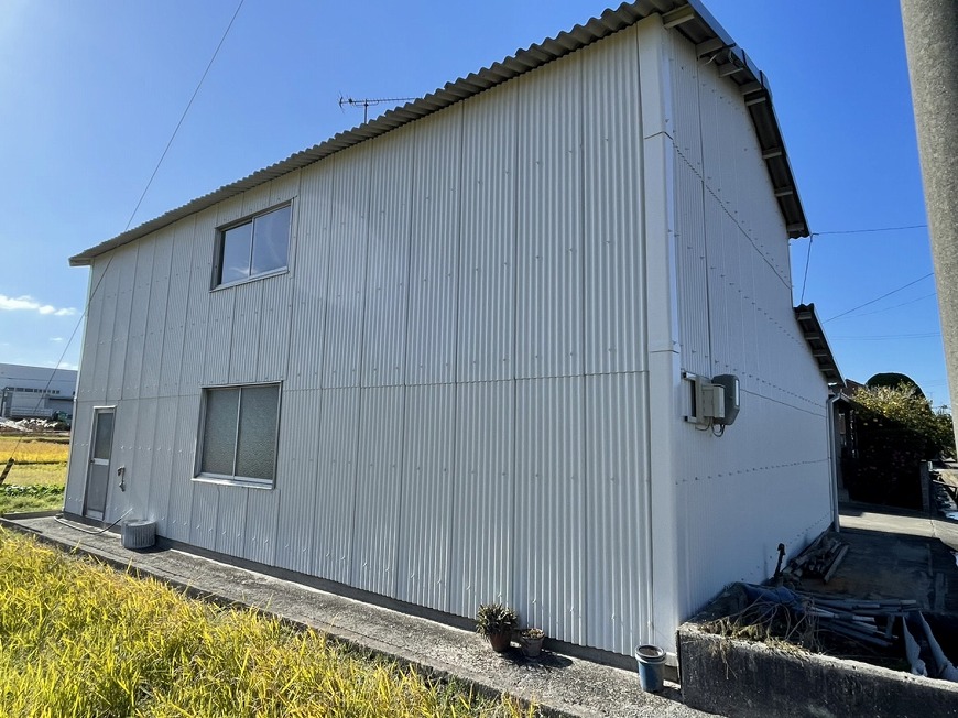 香川県木田郡三木町W様邸で、スレート倉庫の屋根・外壁塗装工事外壁トタンの張替え雨樋交換を行いました。