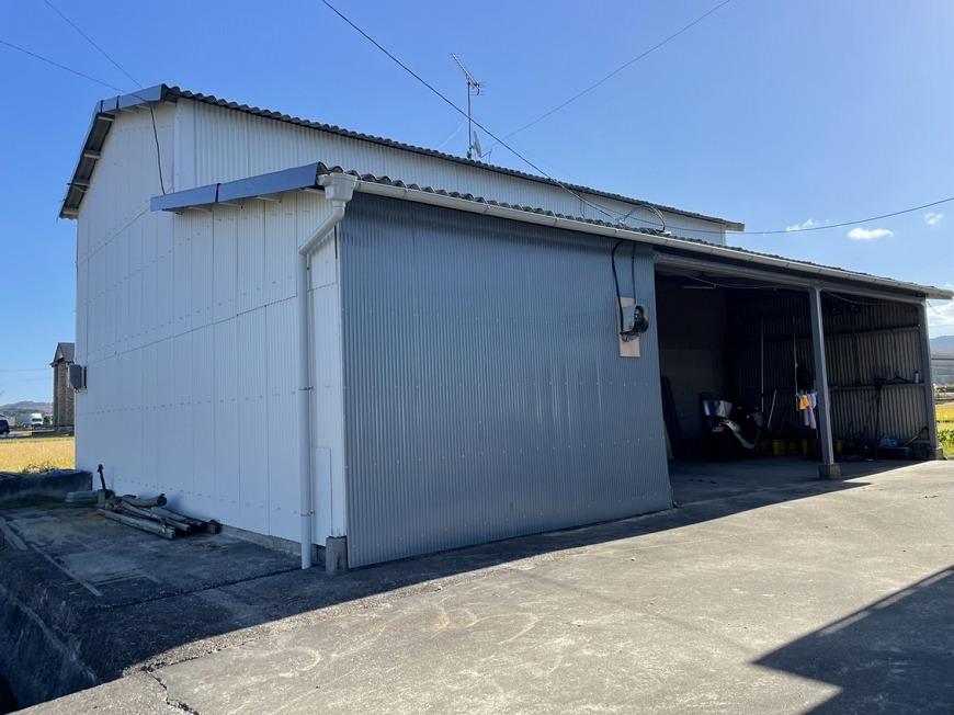 • 香川県木田郡三木町でスレート倉庫の屋根・外壁塗装工事、外壁トタンの張替え、雨樋交換を行いました