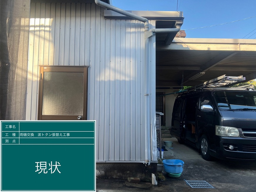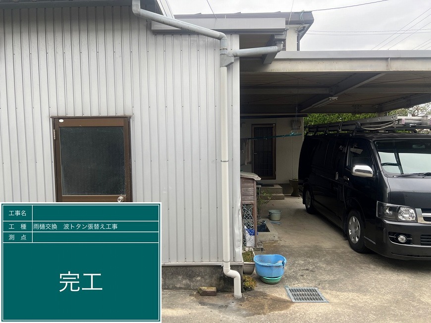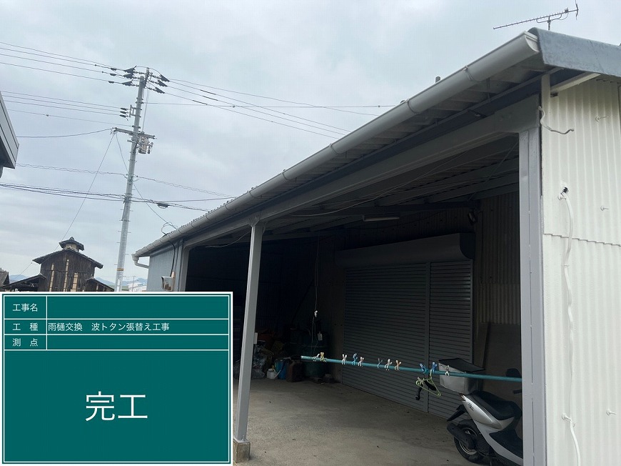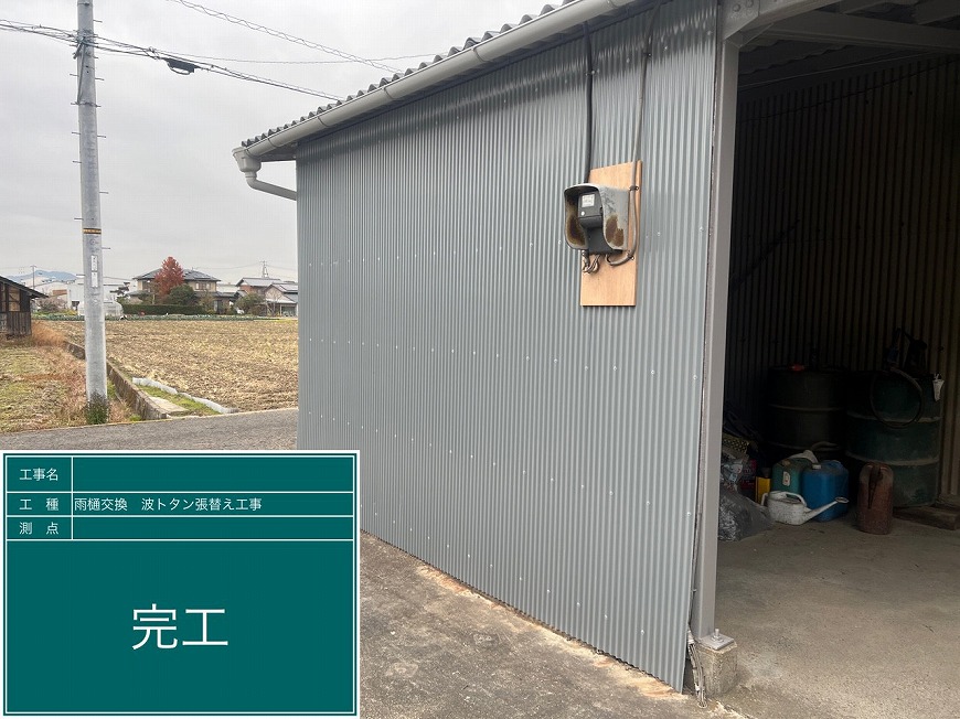 香川県木田郡三木町でスレート倉庫の屋根・外壁塗装工事、外壁トタンの張替え、雨樋交換を行いました