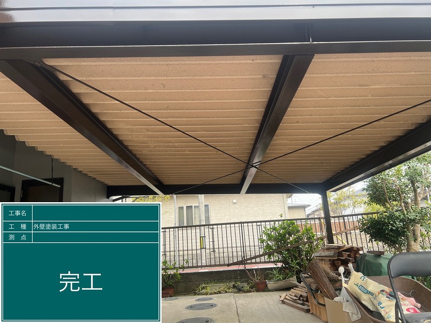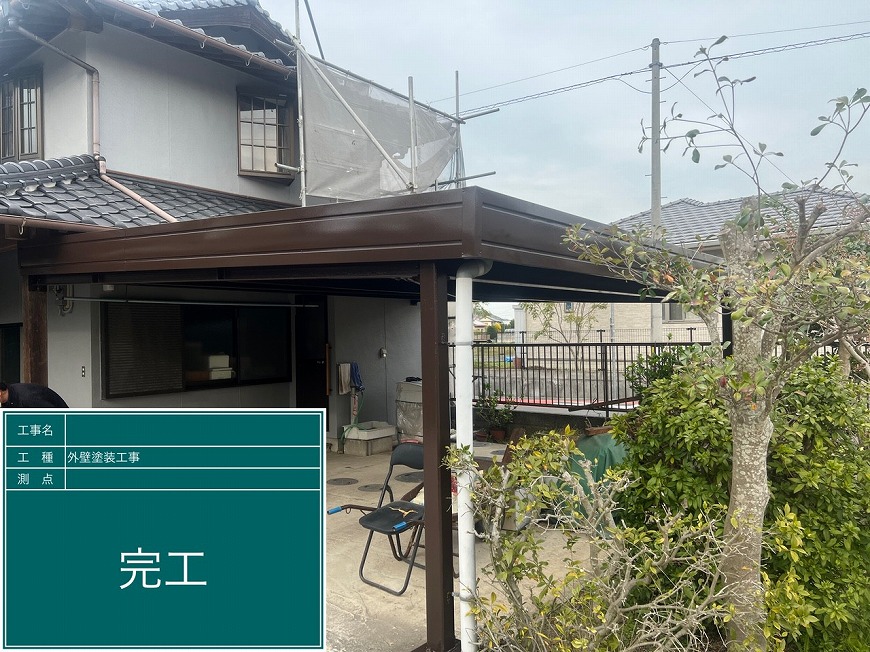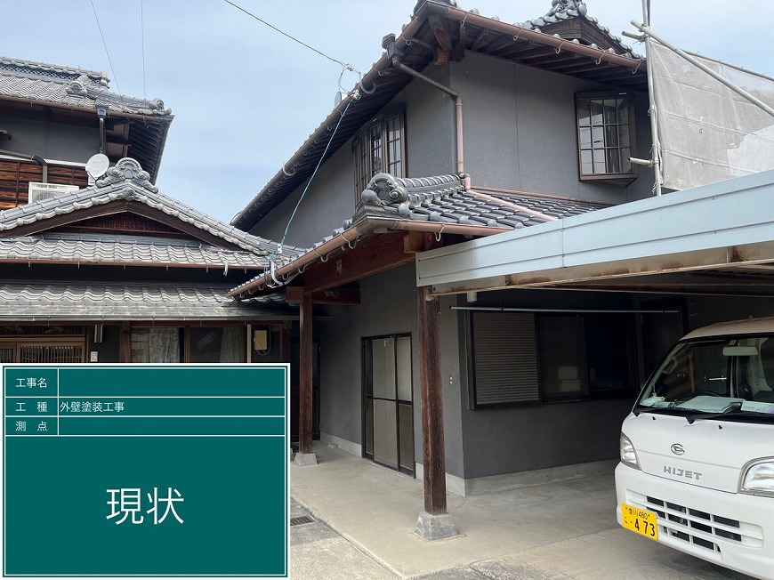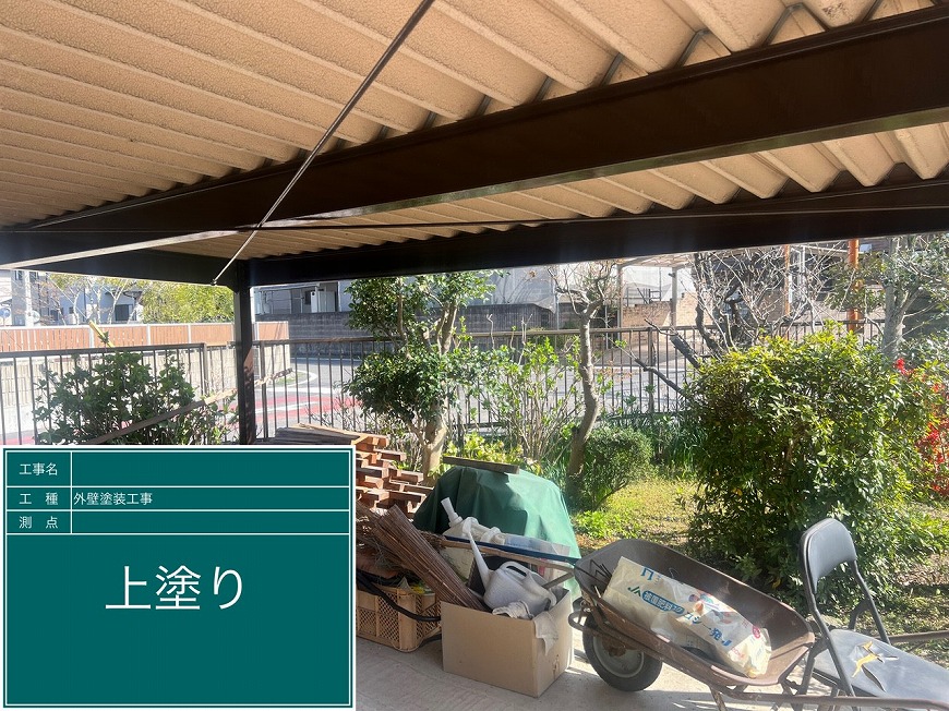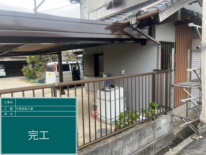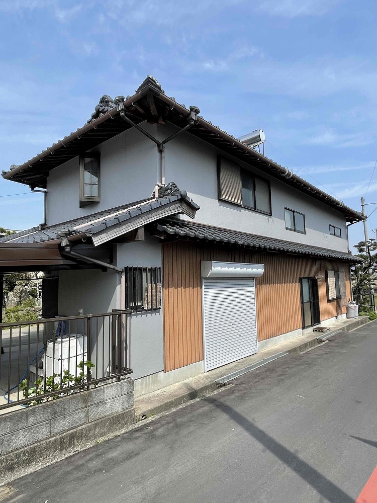 香川県木田郡三木町S様邸で、外壁塗装工事と鉄骨の車庫の塗装を行いました。