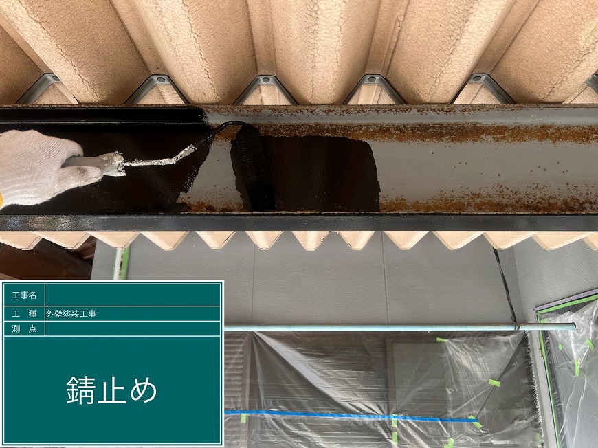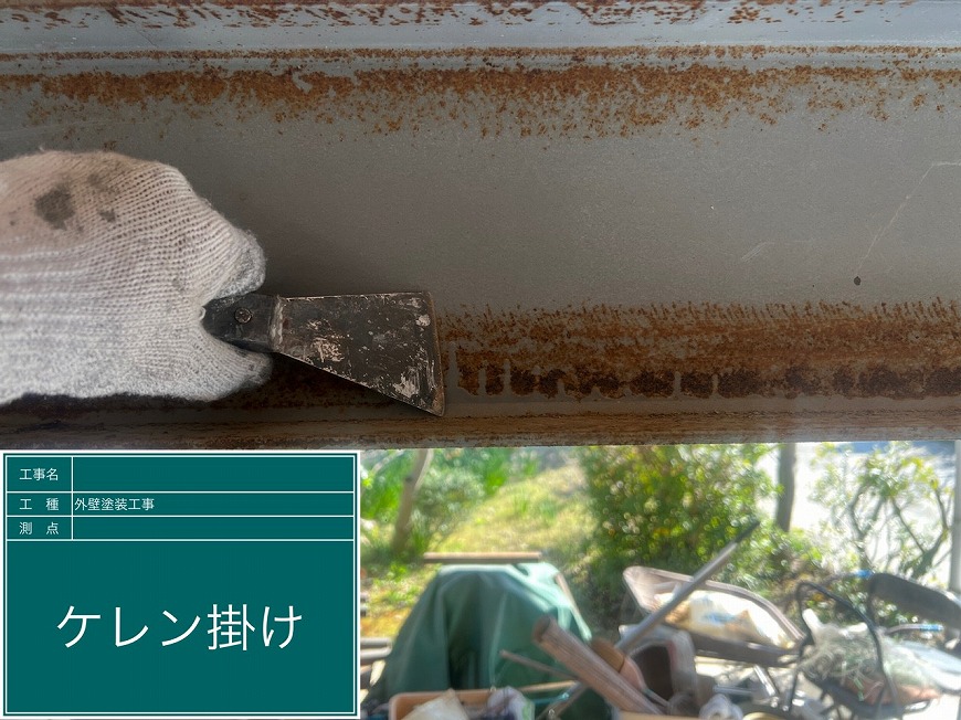高圧洗浄をしたあと、ケレン作業を行いました。