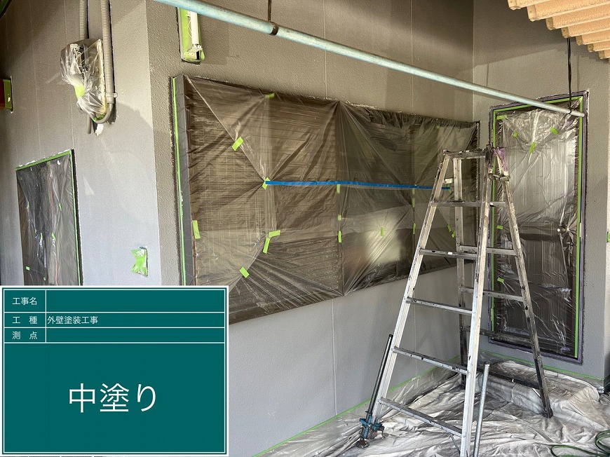 1.足場設置 2.高圧洗浄 3.ケレン 4.養生 5.外壁塗装工事(3回塗り) 6.車庫の錆止めウレタン塗装(3回塗り) 7.足場解体