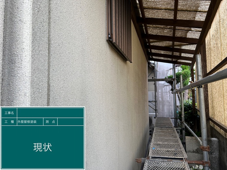 外壁は塗膜がなく雨等を吸収しやすくなっており、所々クラック(割れ)があった。木部は少し腐食が進んでいた。
