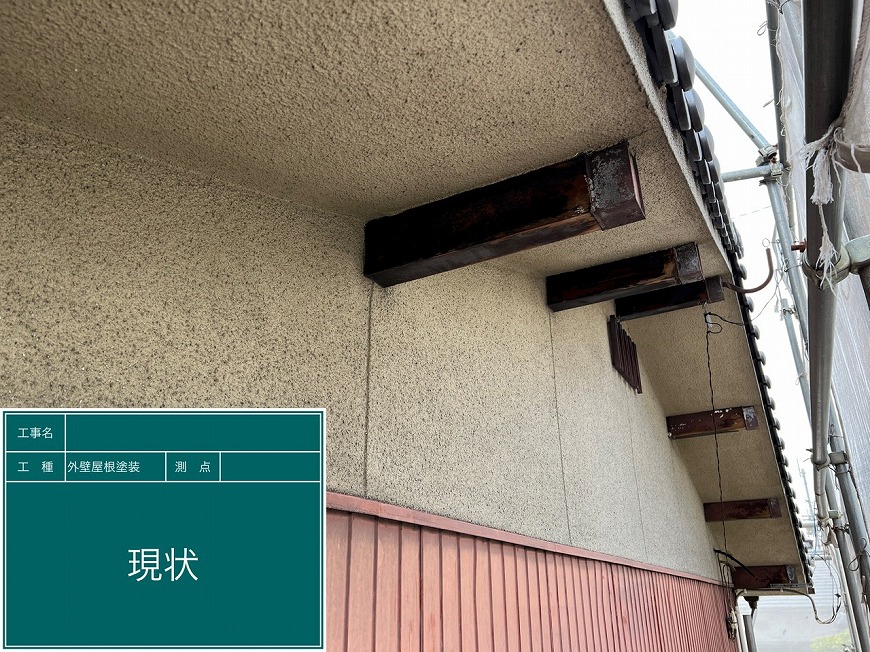 塗膜がなく雨等を吸収しやすくなっており、所々クラック(割れ)がありました。