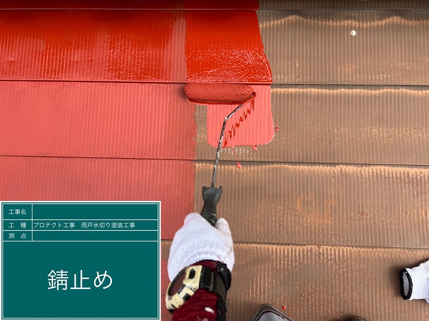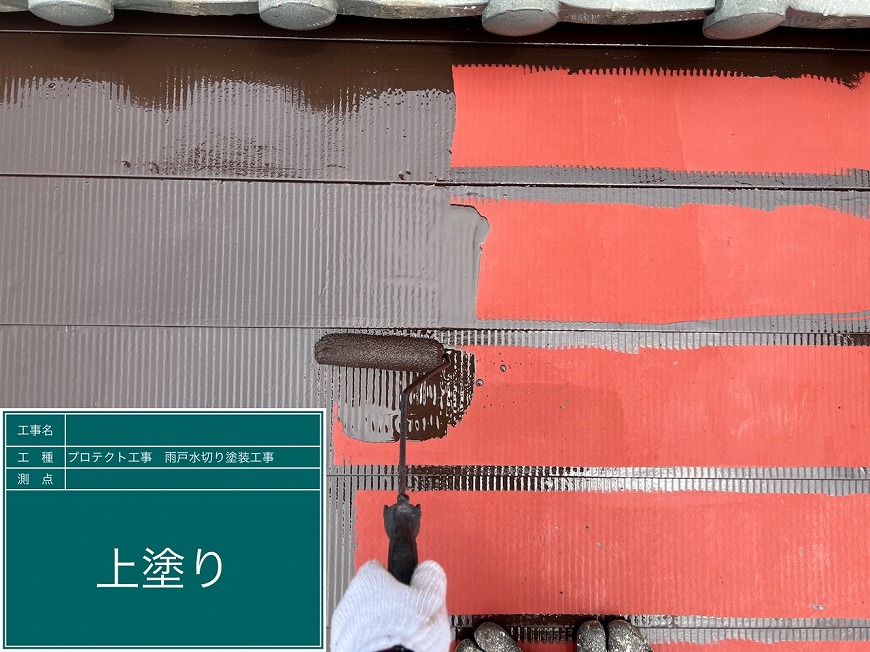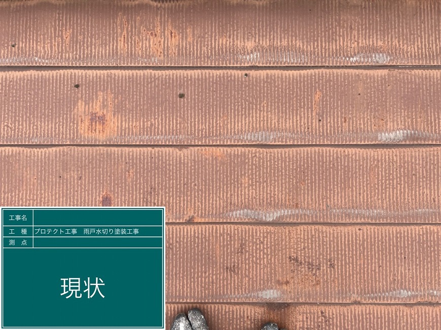 水切り、戸袋雨戸、屋根全ての板金部分の塗膜がなく、錆が出てき始めていました。