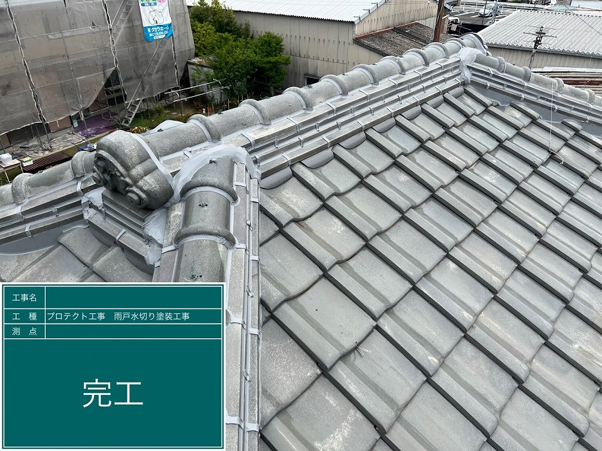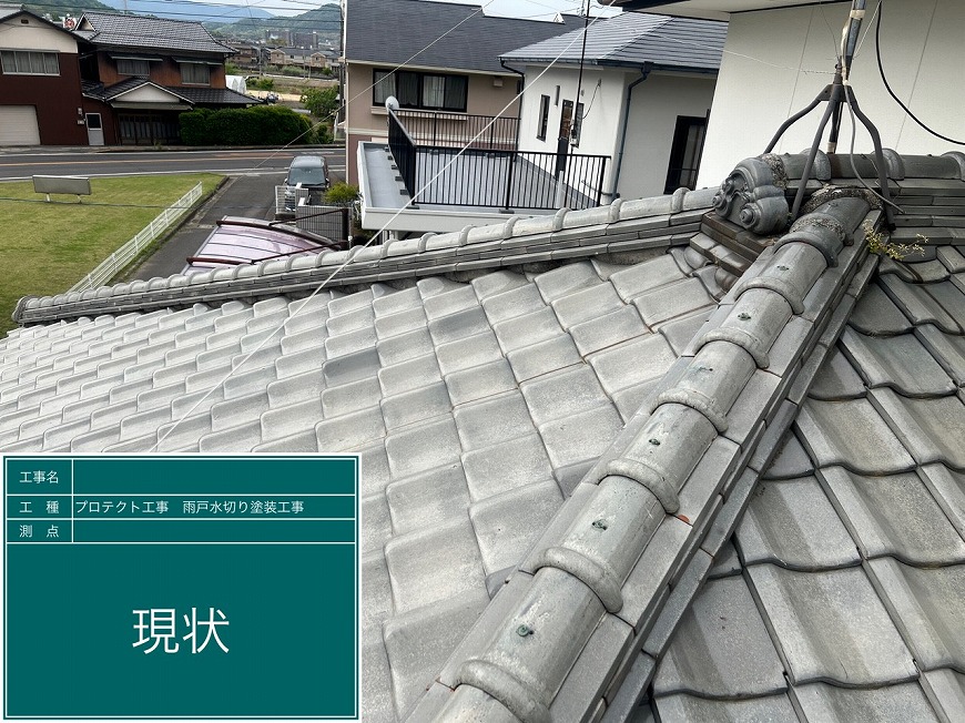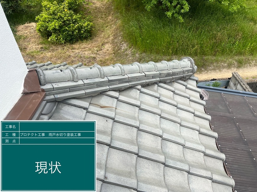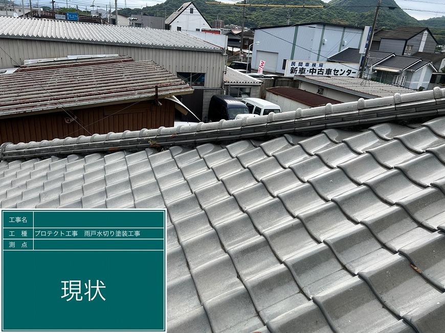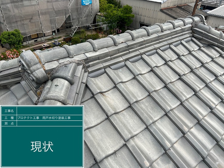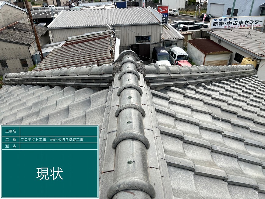 屋根は漆喰が多数取れており、強い雨風等が吹くときに雨漏りがしていた。谷の瓦が落ちており隙間があいていたのと、その周辺の瓦が浮いていた。水切り、戸袋雨戸、屋根全ての板金部分の塗膜がなく、錆が出てき始めていた。
