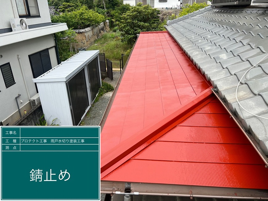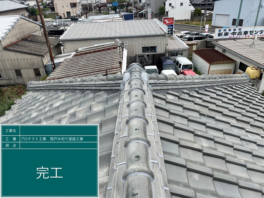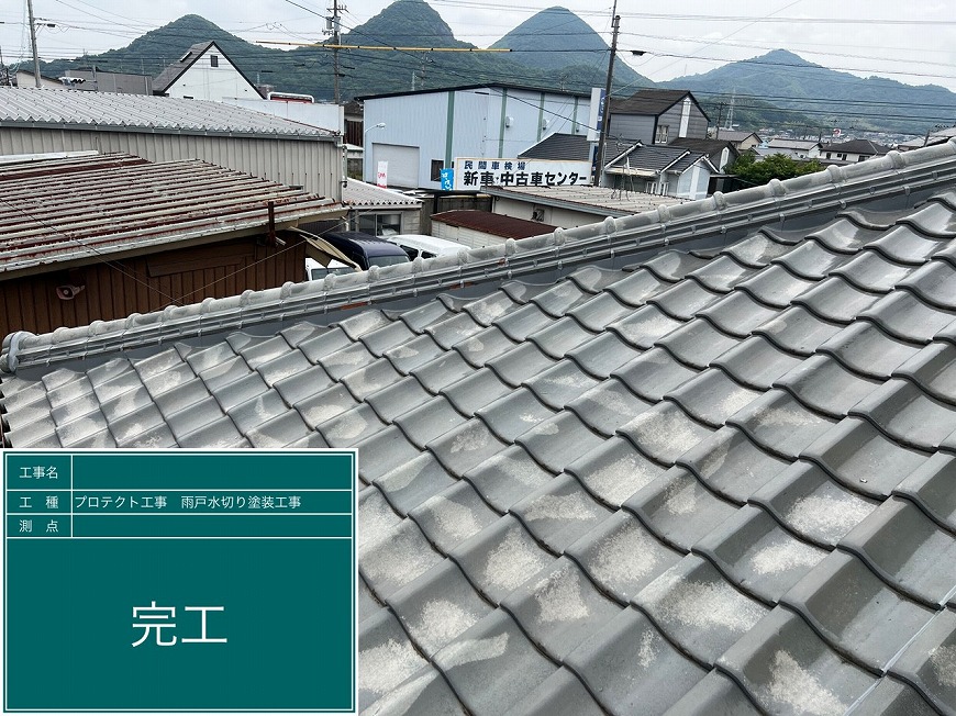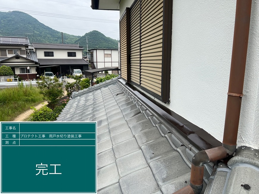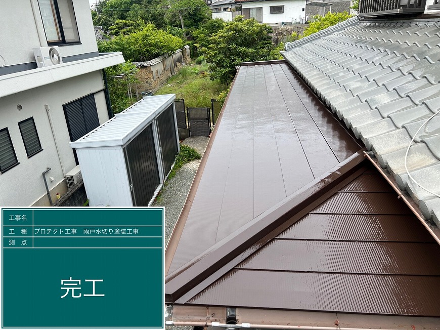 香川県高松市国分寺町にて雨漏り工事、水切り板金塗装・戸袋雨戸・塗装、屋根板金塗装を行いました