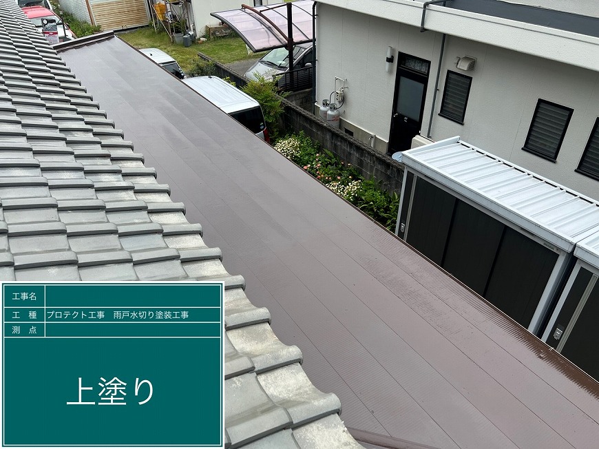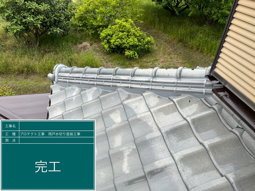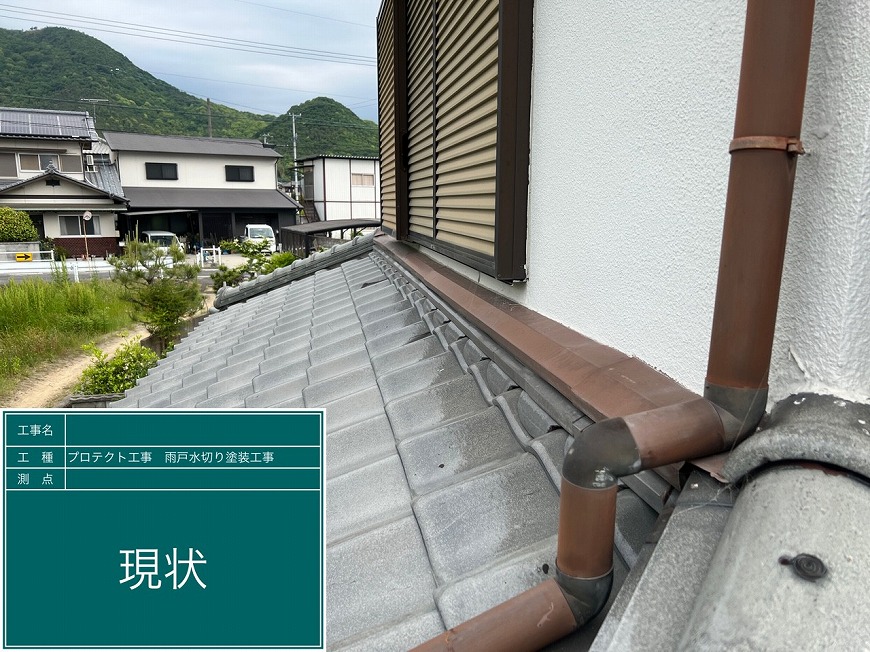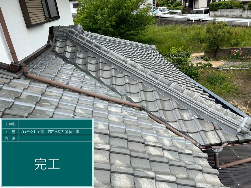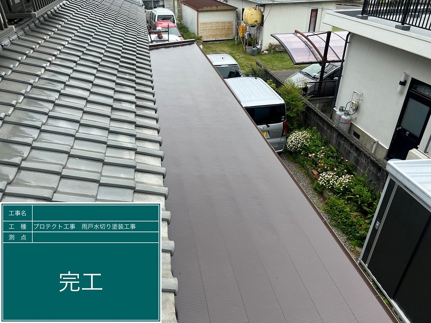 香川県高松市国分寺町K様邸にて、雨漏り工事、水切り板金塗装・戸袋雨戸塗装・屋根板金塗装を行いました。