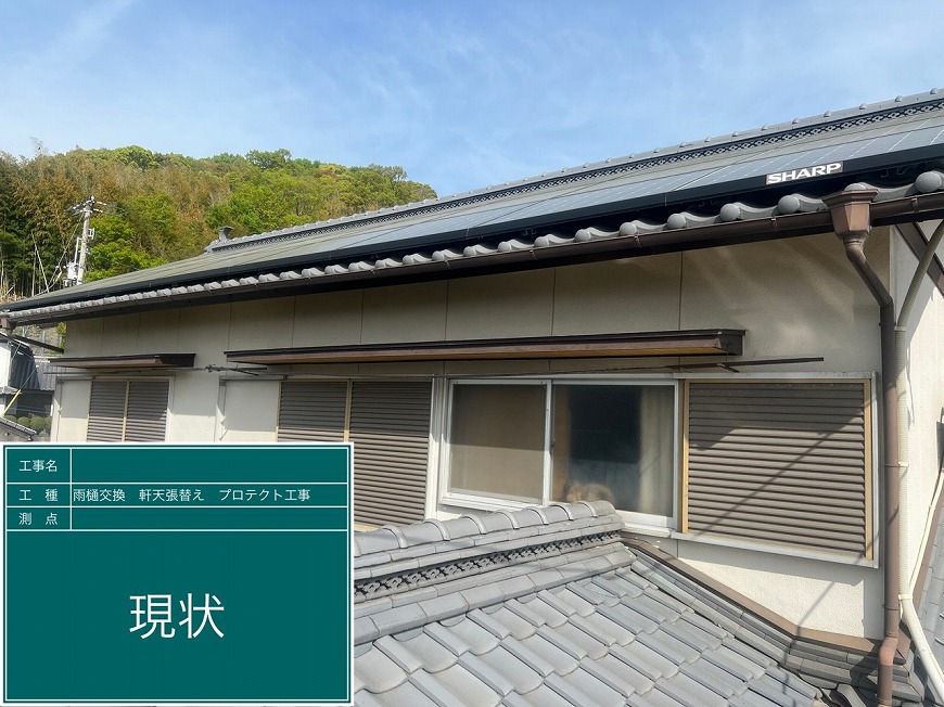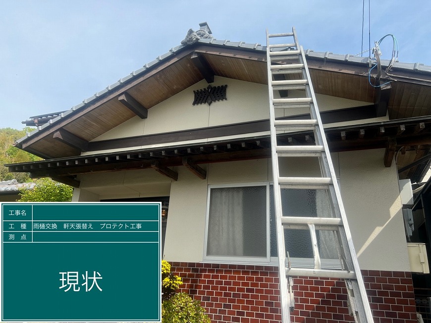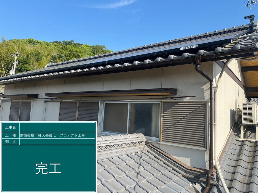香川県高松市国分寺町にて雨樋交換工事、屋根雨漏り工事、軒天張替え工事を行いました