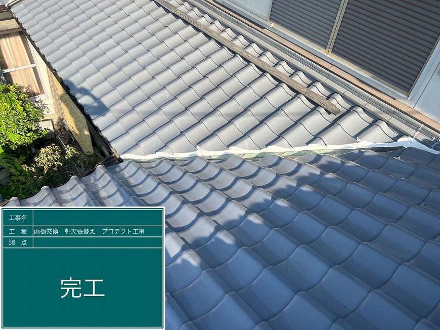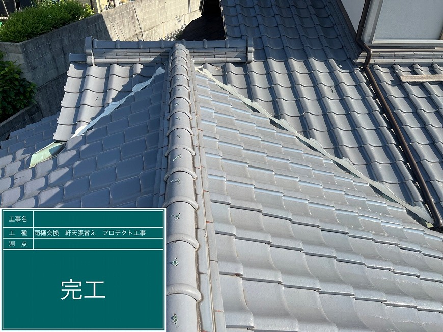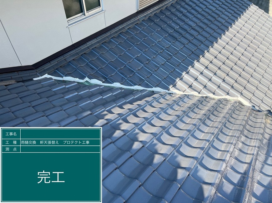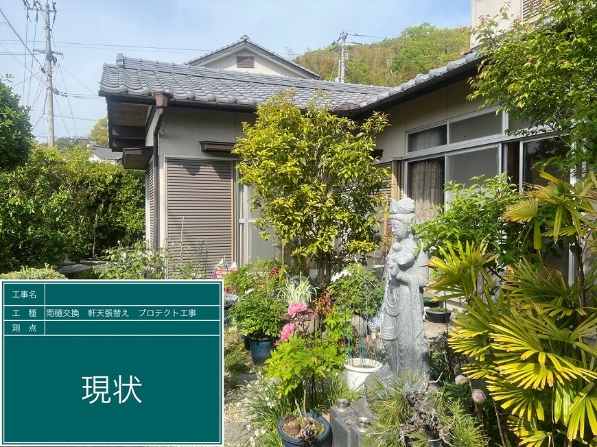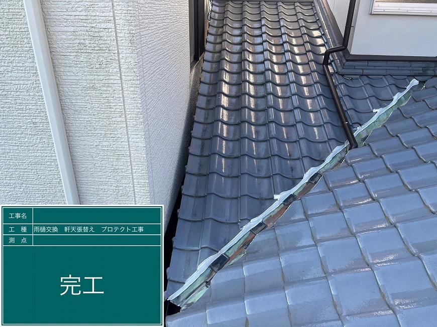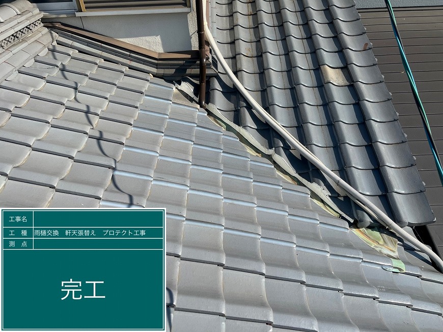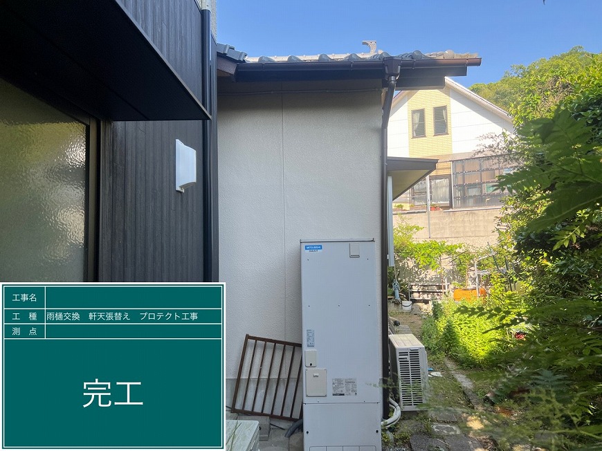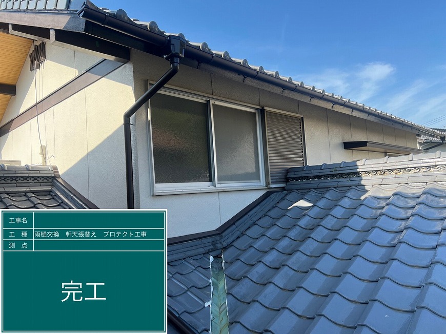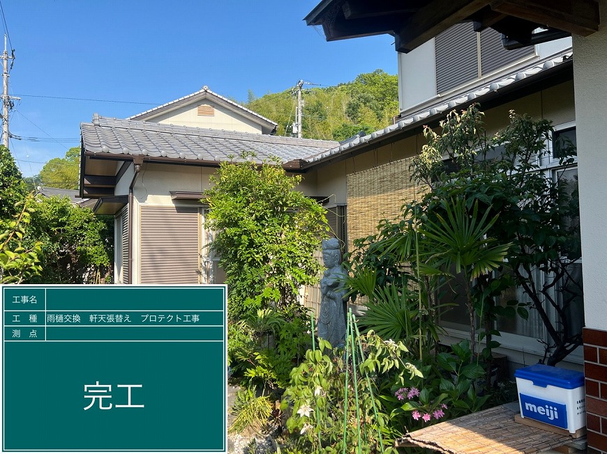香川県高松市国分寺町H様邸にて、雨樋交換工事、屋根雨漏り工事、軒天張替え工事を行いました。