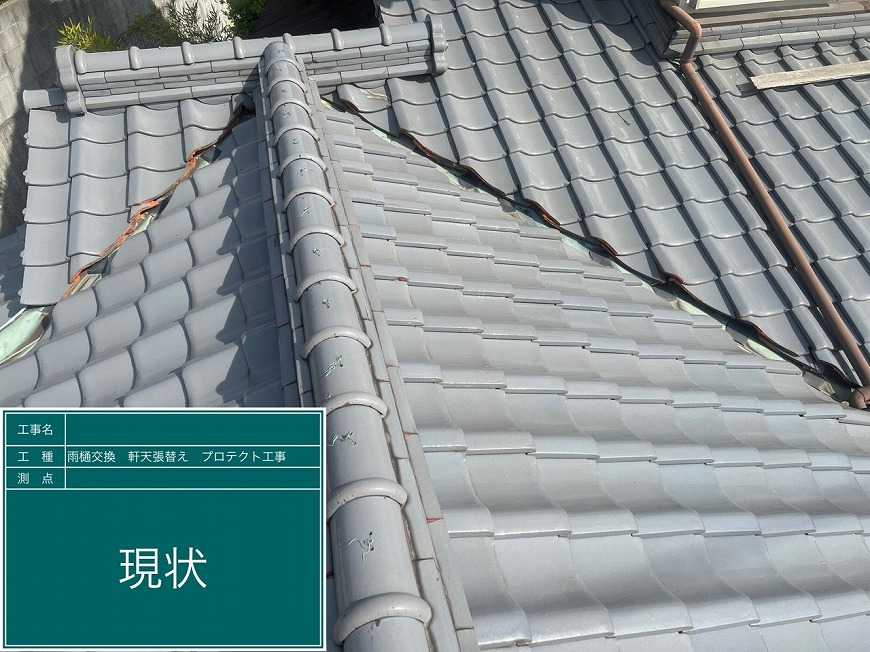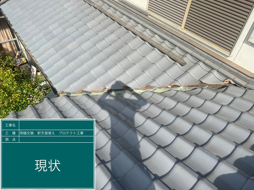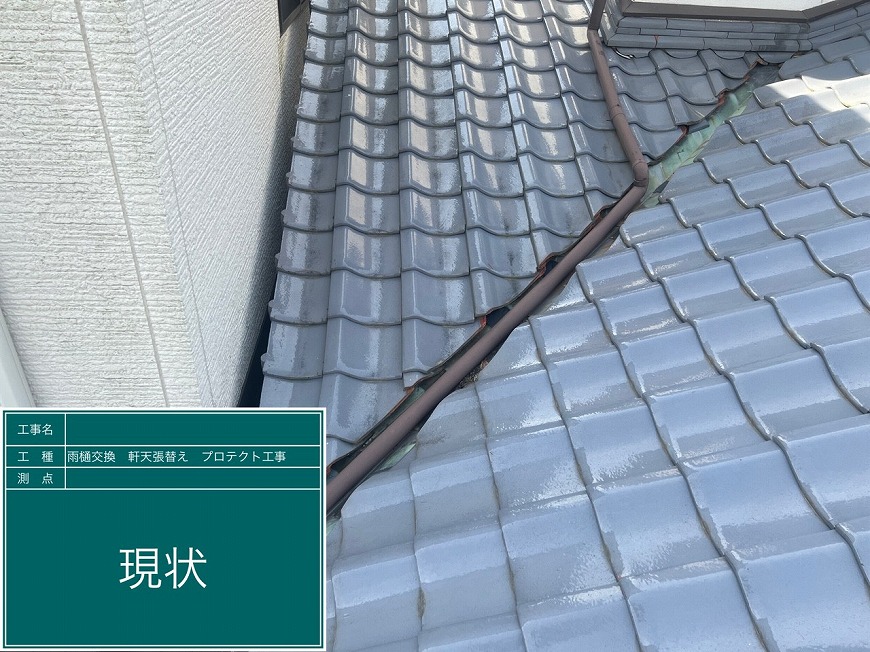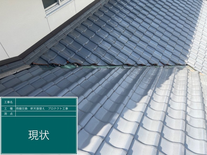 谷瓦がずれ、瓦と谷板金の間に隙間があいていて雨漏りしていた。雨樋が劣化し、割れている箇所や機能していない箇所があった。軒天は劣化しており、剥がれているところや落ちかけているところがあり、見た目が悪くなっていた。