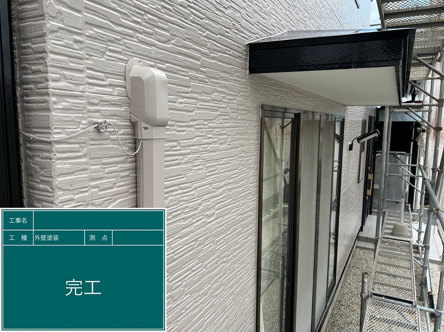 香川県坂出市にて屋根・外壁塗装工事、ベランダ防水工事、庇塗装工事を行いました