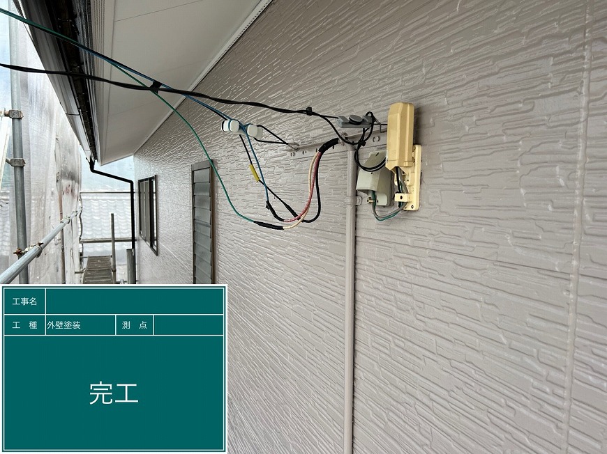 1.足場設置 2.高圧洗浄 3.目地シーリング工事 4.養生 5.外壁塗装工事(3回塗り) 6.屋根塗装工事(3回塗り) 7.庇塗装工事 8.雨樋その他付帯塗装工事 9.ベランダ防水工事 10.足場解体