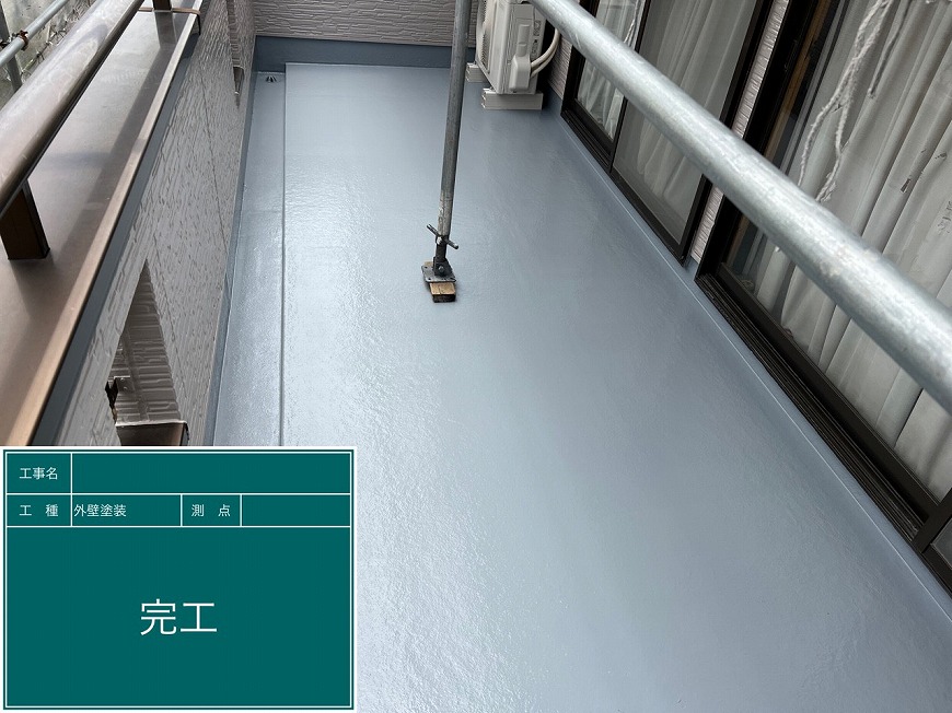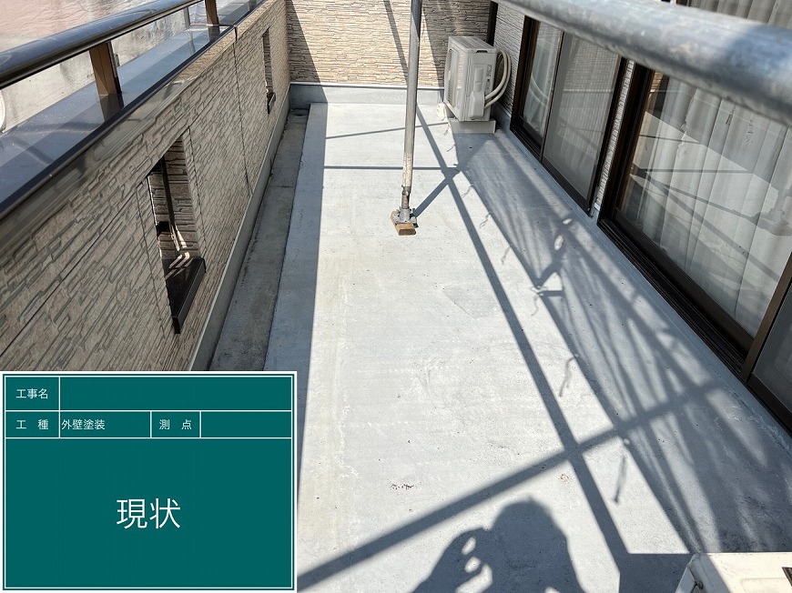 ベランダは防水機能が弱くなっていた。庇は塗膜がなく、錆が出る手前の状態だった。