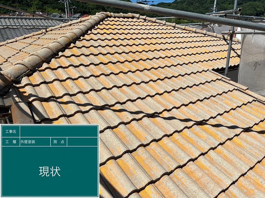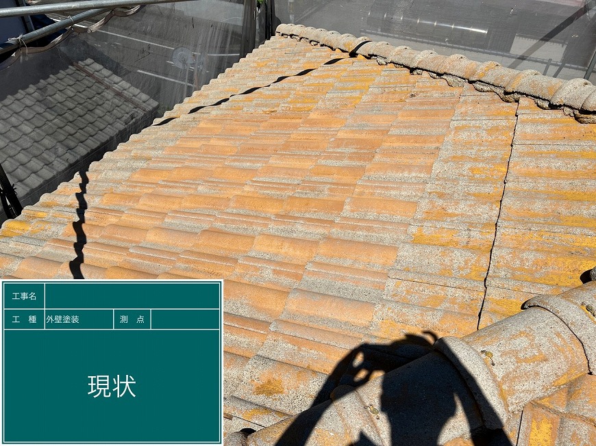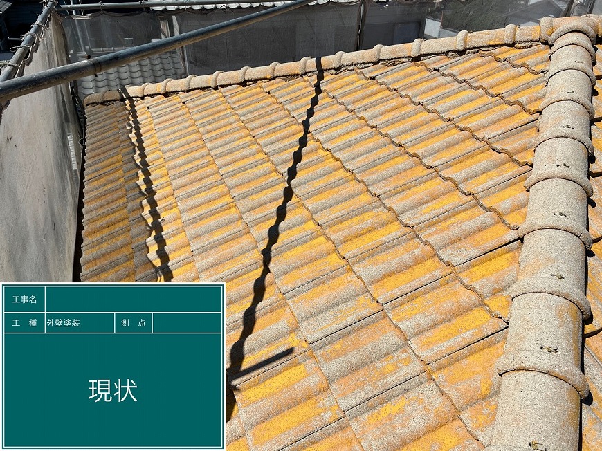 屋根は40年以上塗装していなかったため塗膜がなくコケが生えており、クラックも数ヵ所あった。塀は40年以上何もしていなかったため、膨らみやクラック等がありかなり傷んでいた。破風板は木部が腐食しており、スカスカになっていた。