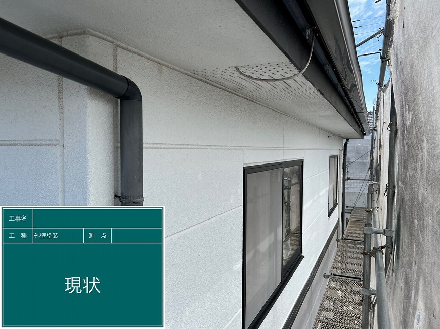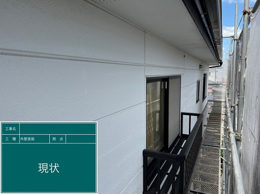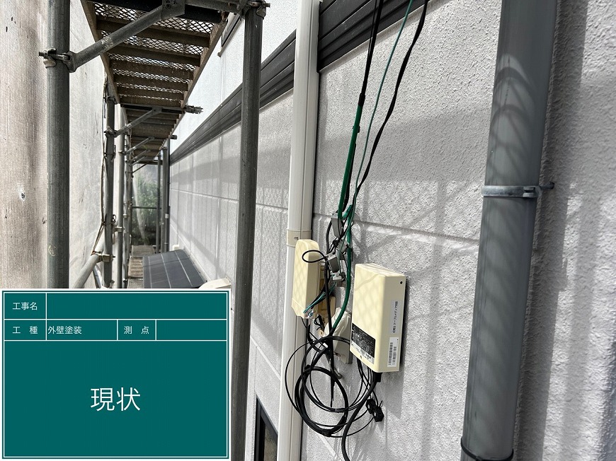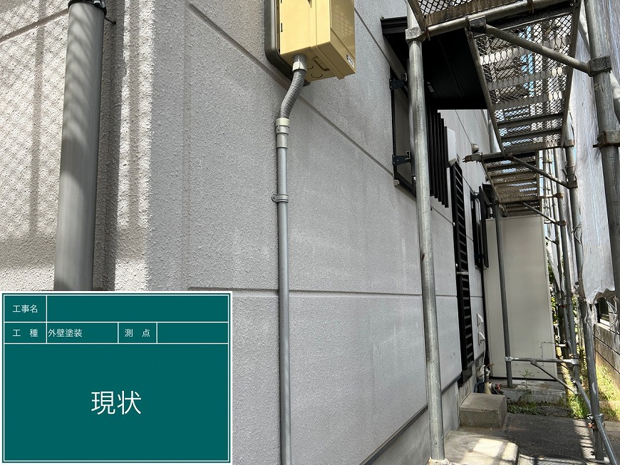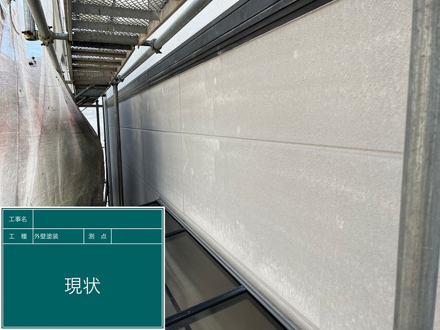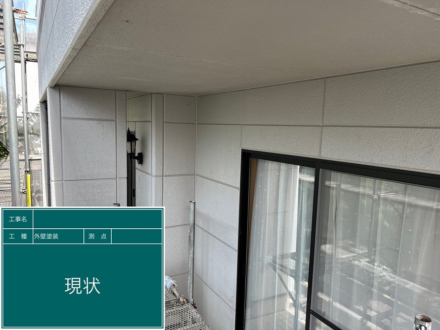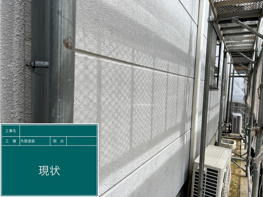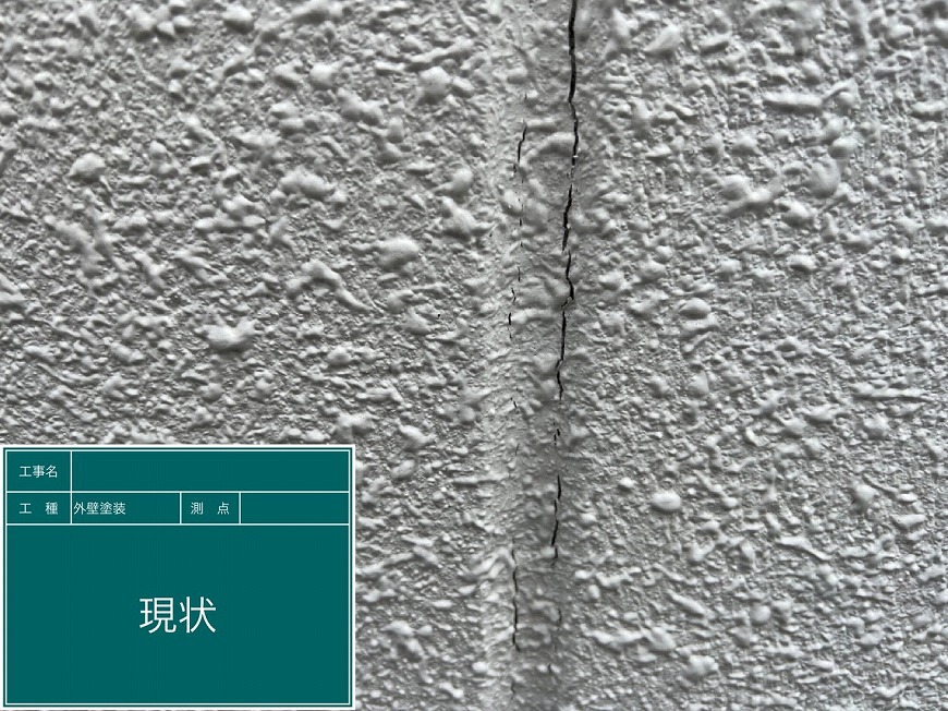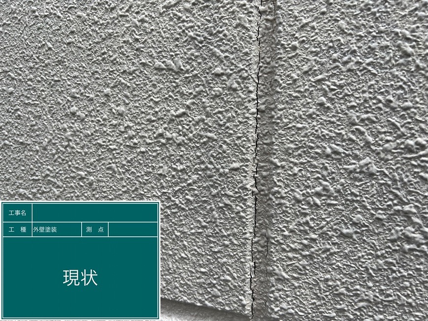 外壁は塗膜が少なくなっており、数ヵ所クラックが入りだしていて防水機能が少し弱まっていました。