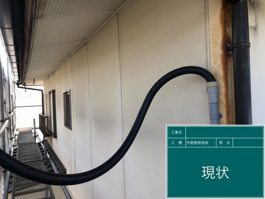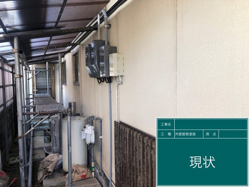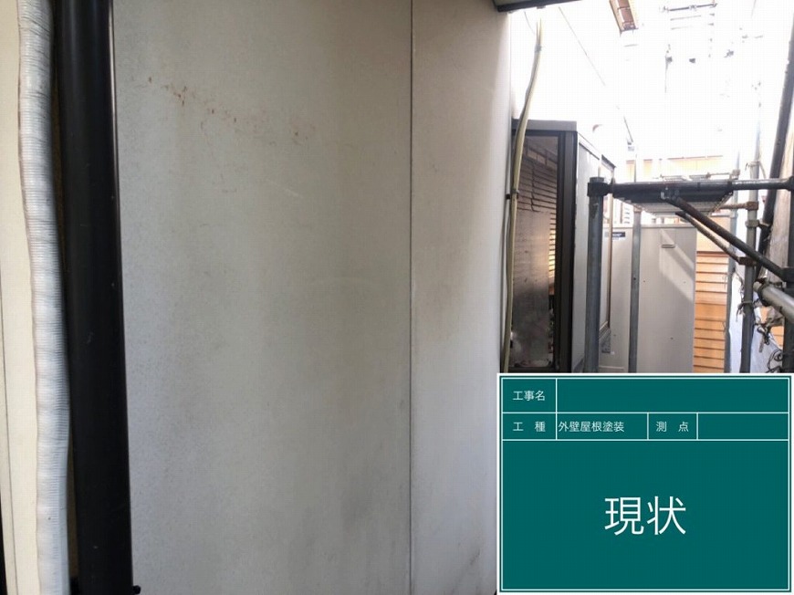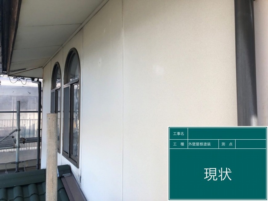 外壁は塗膜なくチョーキングあり。目地は割れていた。