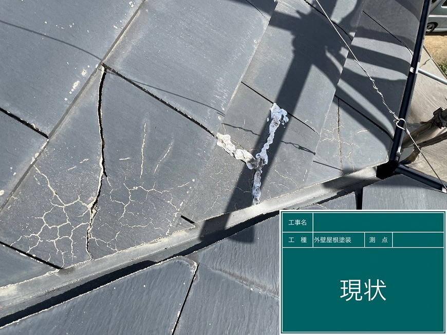 屋根は塗膜がなく、クラックが数ヵ所あった