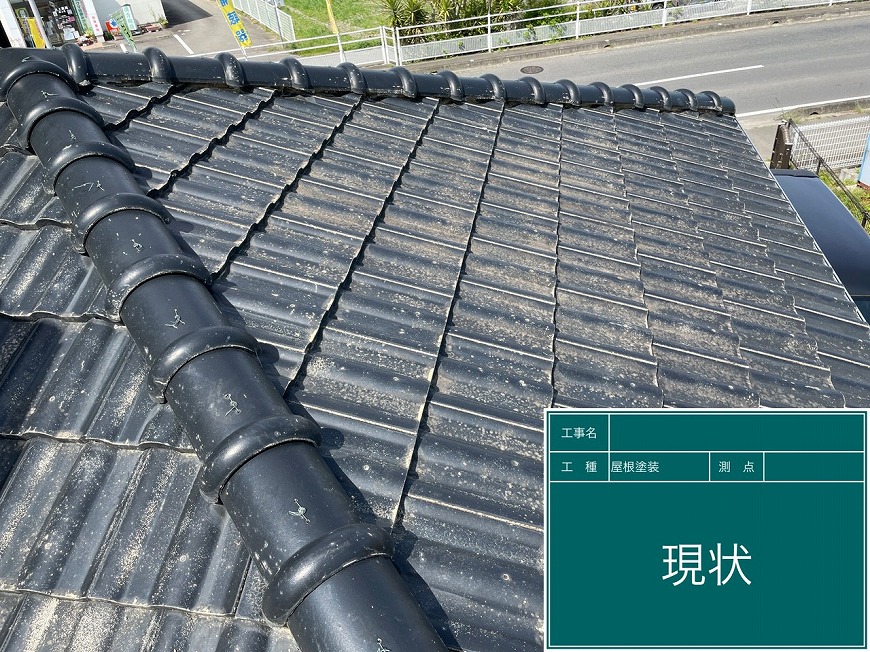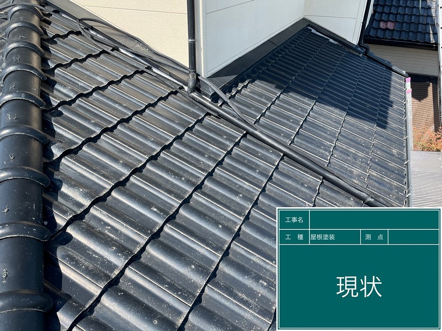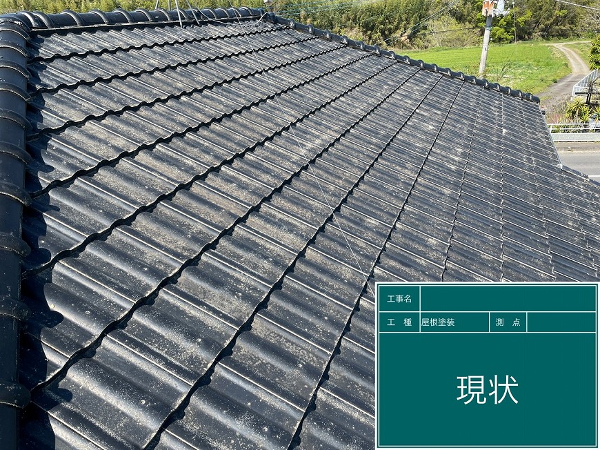 屋根は塗膜がなく、コケが生えており、クラック(割れ)もありました。