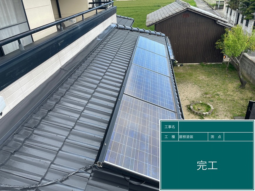 香川県綾歌郡綾川町で屋根塗装工事、棟漆喰工事、ベランダ防水工事を行いました