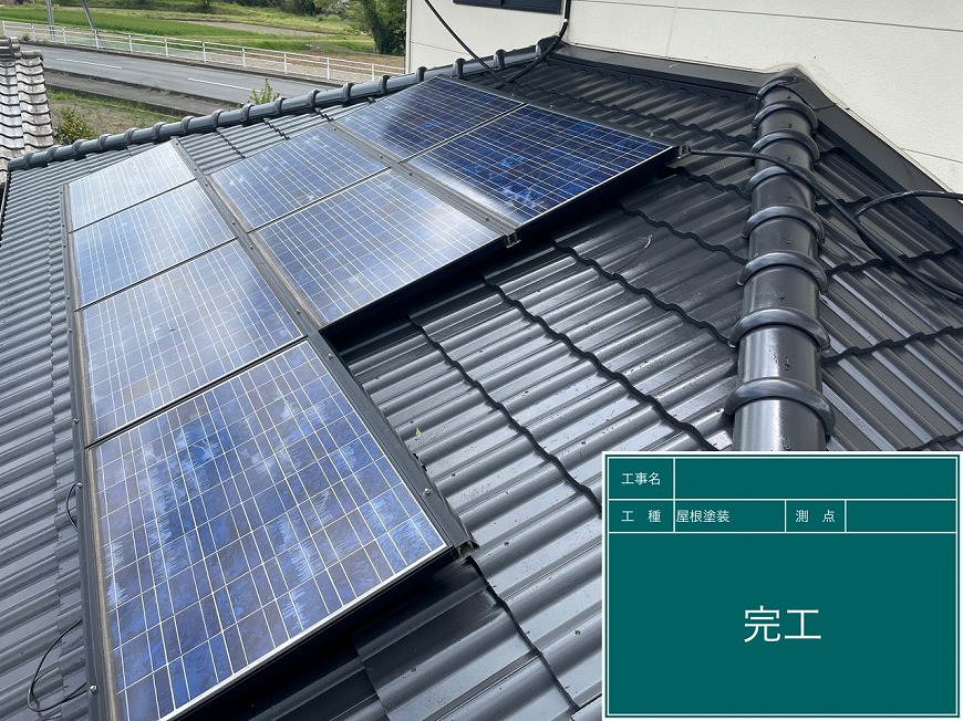 1.高圧洗浄 2.屋根クラック補修 3.太陽光周り養生 4.屋根塗装(3回塗り) 5.ベランダ防水工事(3回塗り) 6.屋根漆喰工事